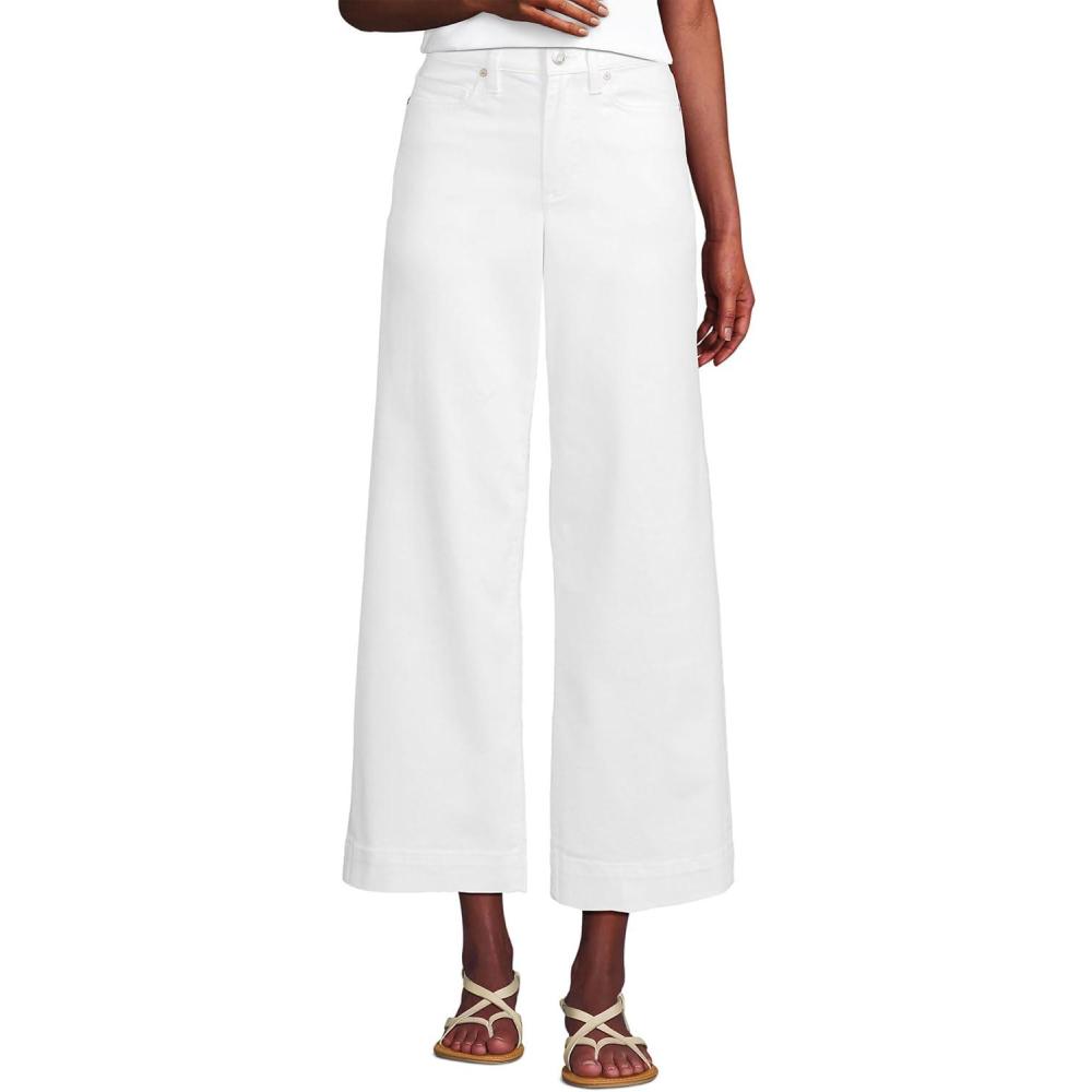 Lands’ End Women’s Recover Denim High Rise Wide Leg Crop Jeans(White)
