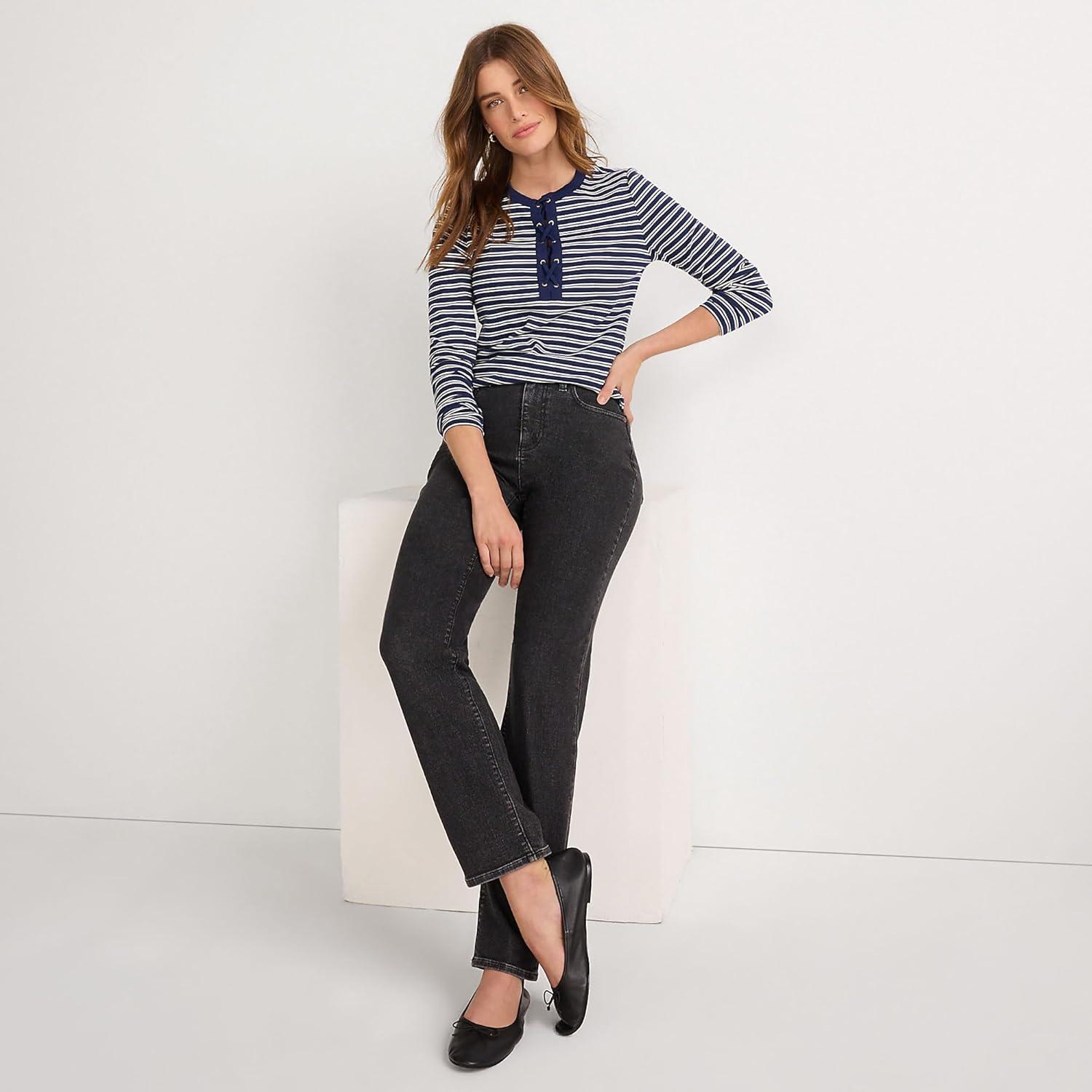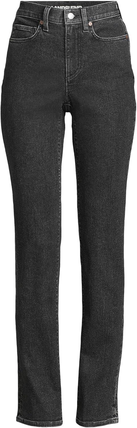 Lands’ End Women’s Recover High Rise Straight Leg Blue Jeans(Black Stone Wash)
