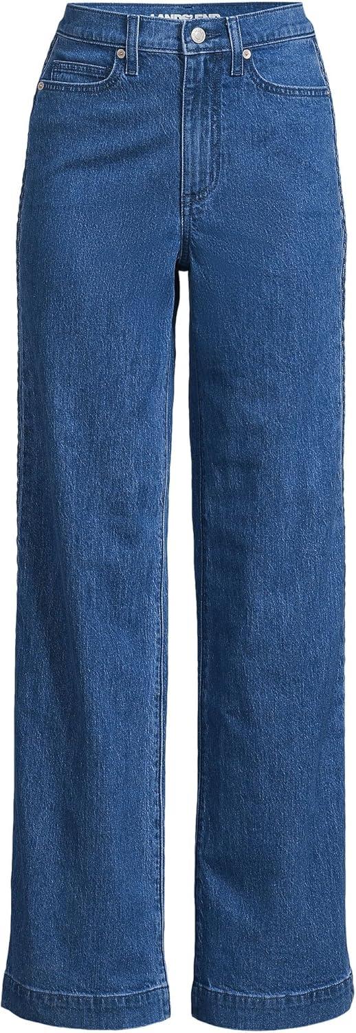 Lands’ End Women’s Recover High Rise Wide Leg Jeans(Laguna Blue With Braided Seam)