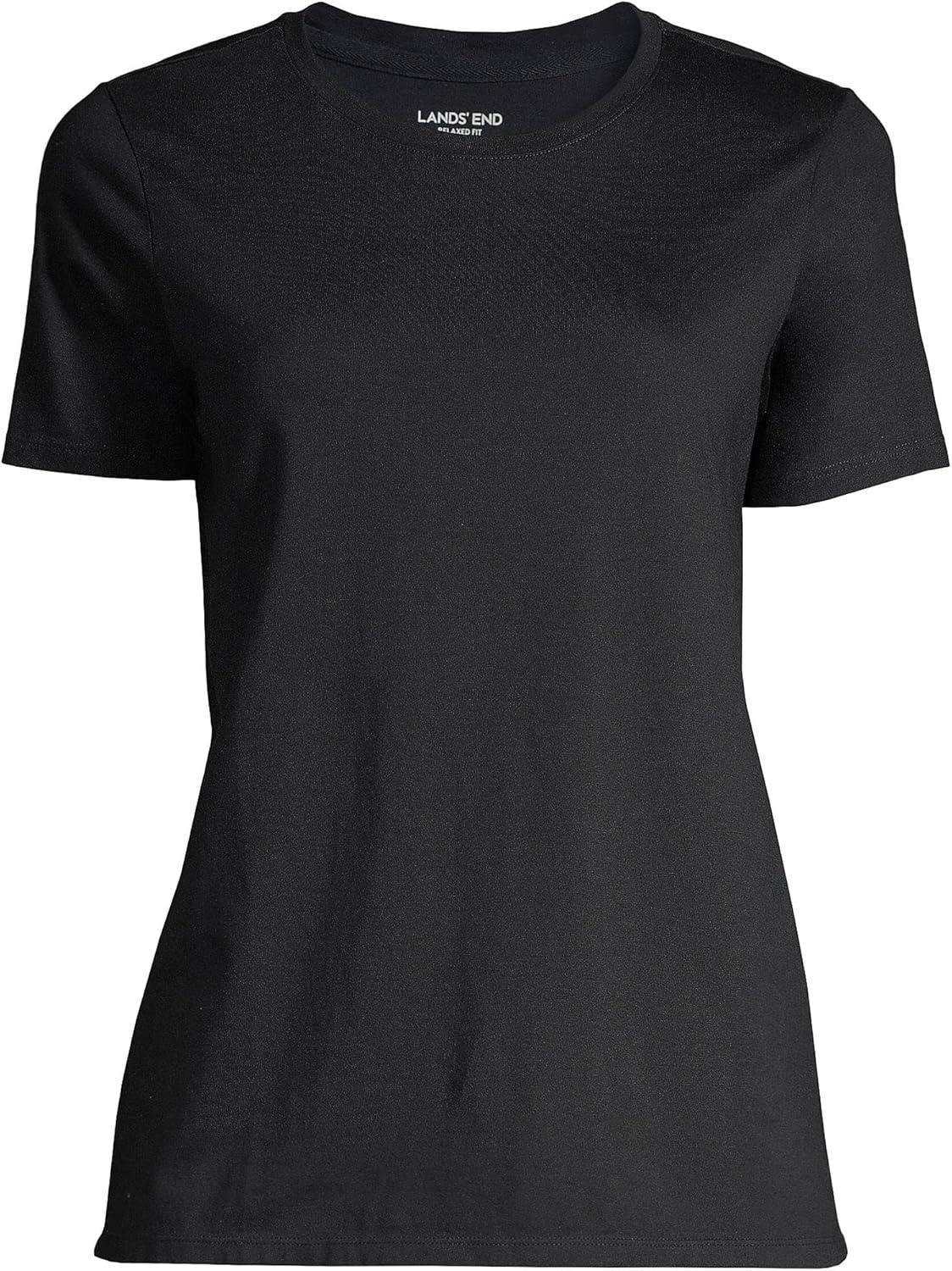 Lands’ End Women’s Relaxed American-Grown Supima Cotton Crew Neck T-Shirt(Black)