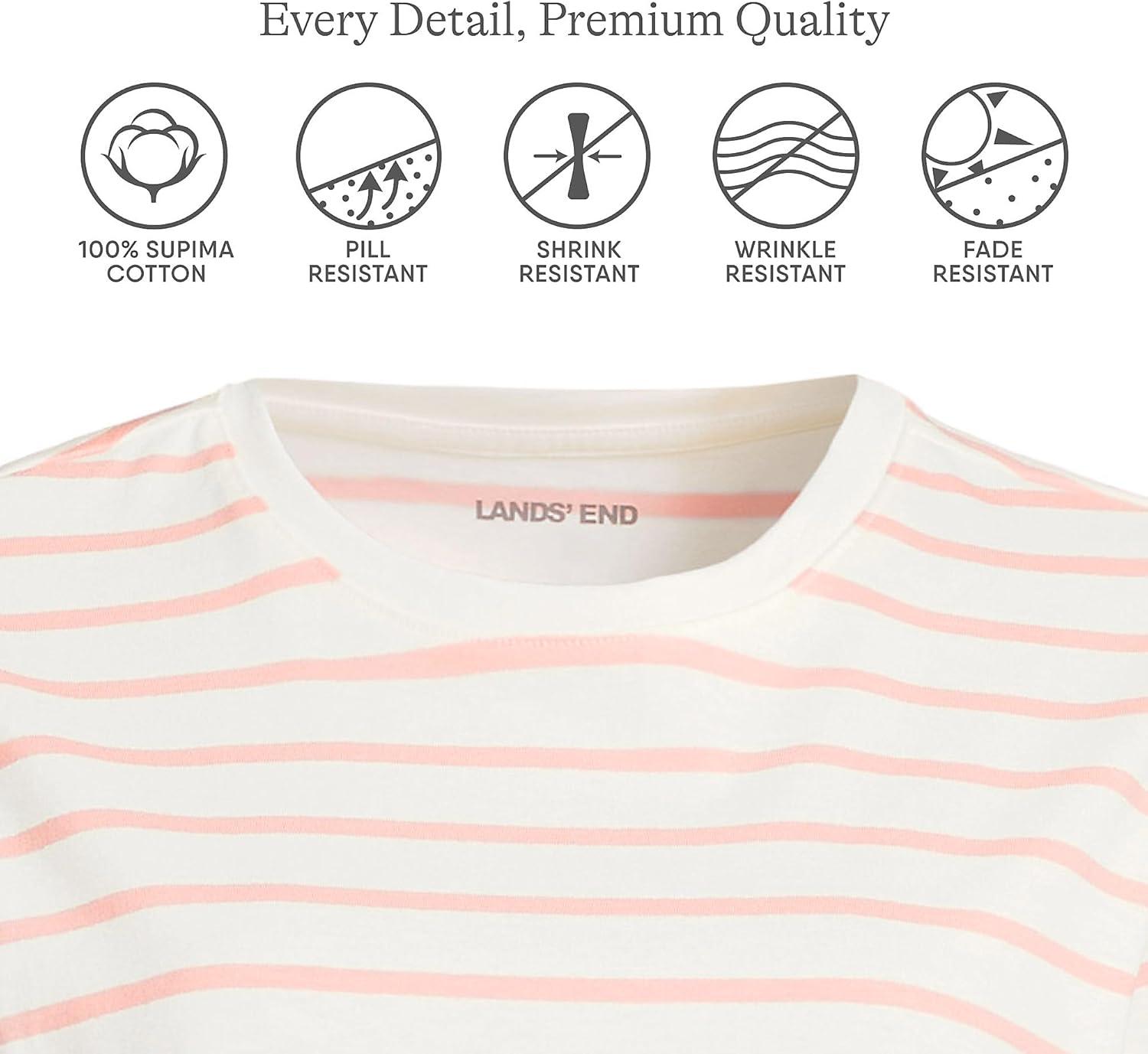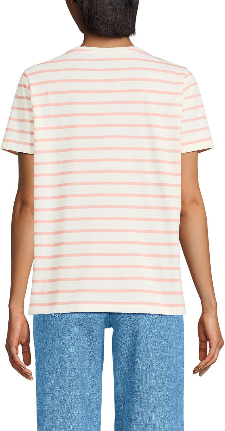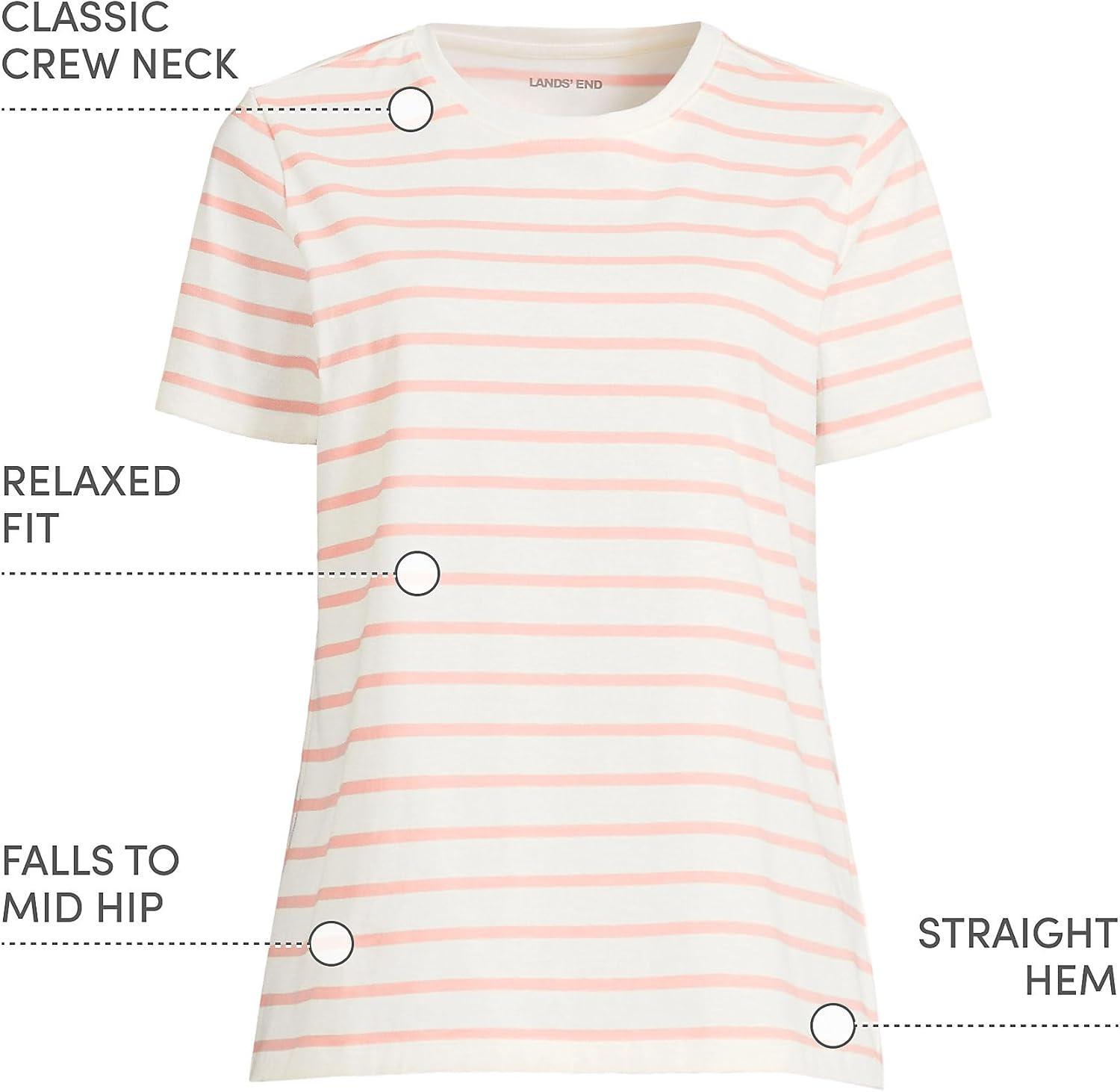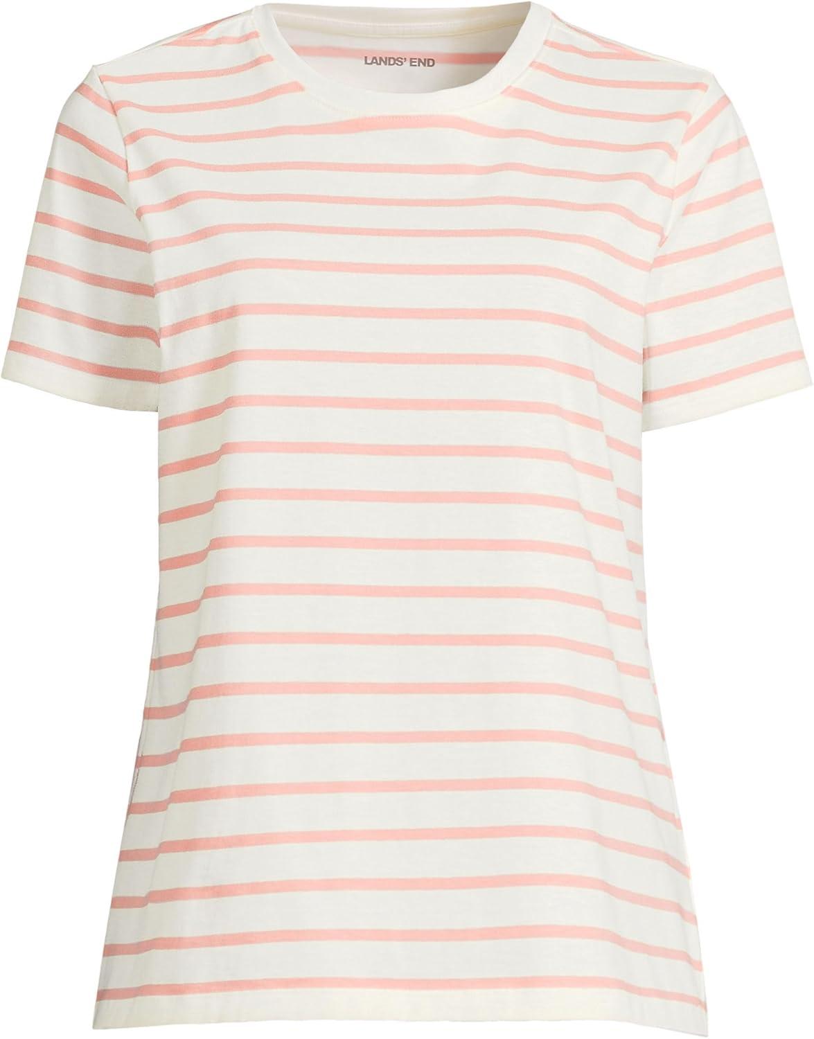 Lands’ End Women’s Relaxed American-Grown Supima Cotton Crew Neck T-Shirt(Ivory/Peach Breton Stripe)
