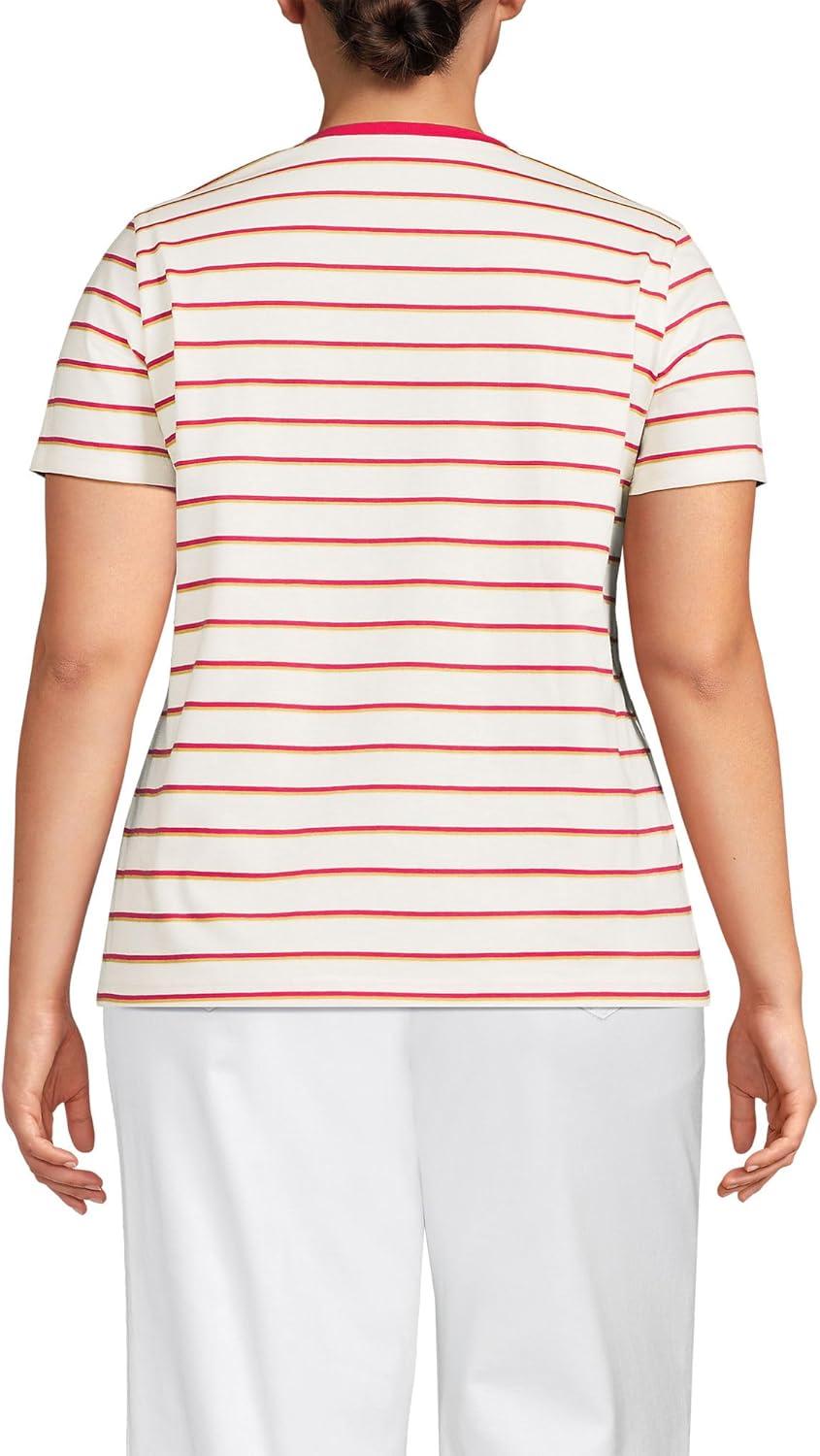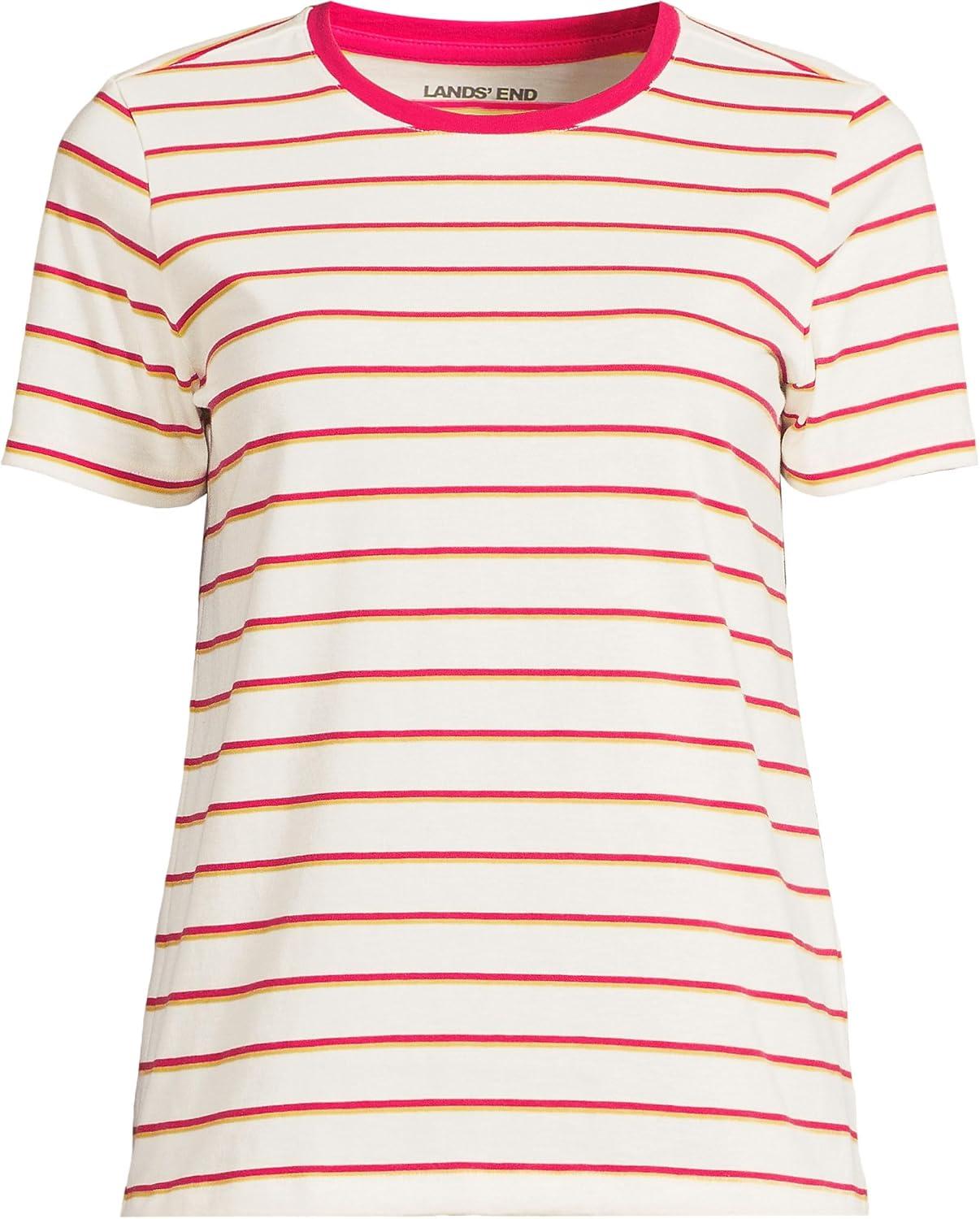 Lands’ End Women’s Relaxed American-Grown Supima Cotton Crew Neck T-Shirt(Ivory/Poppy Double Stripe)