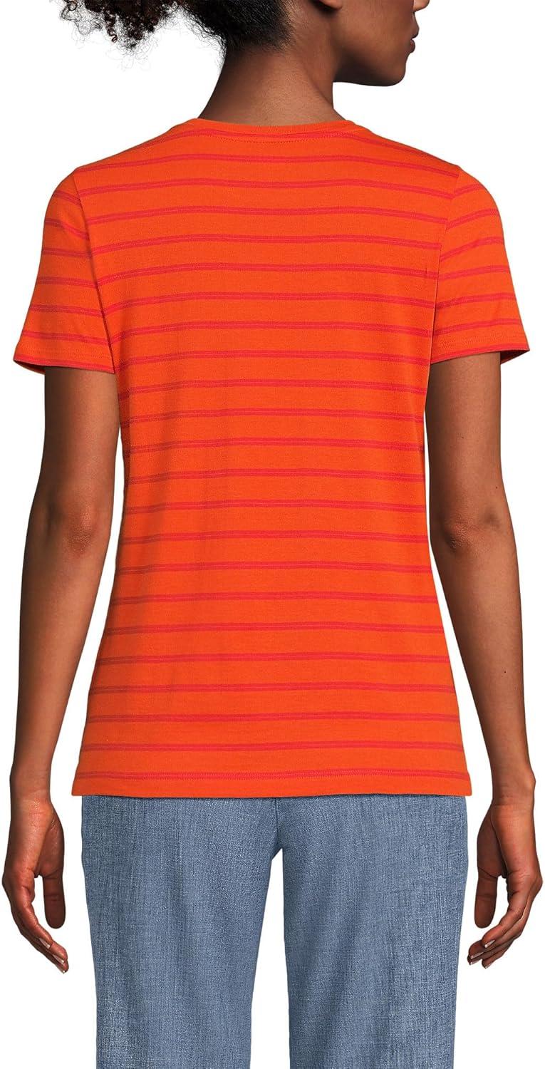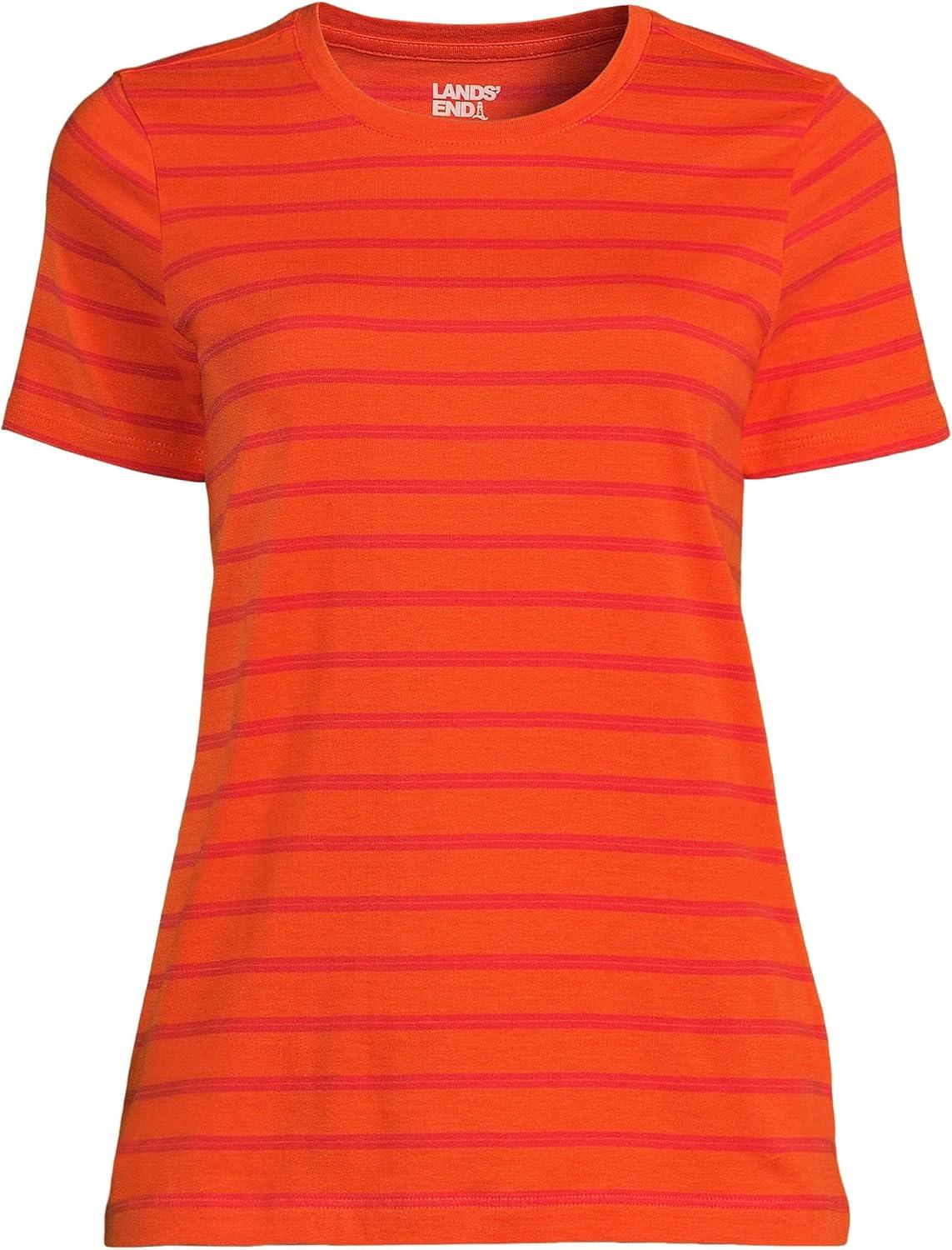 Lands’ End Women’s Relaxed American-Grown Supima Cotton Crew Neck T-Shirt(Rich Persimmon Dual Stripe)