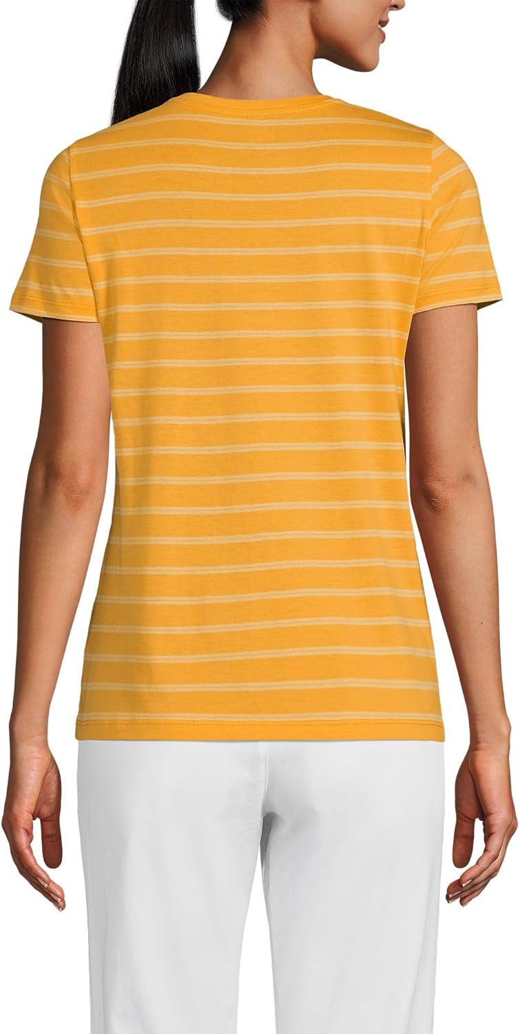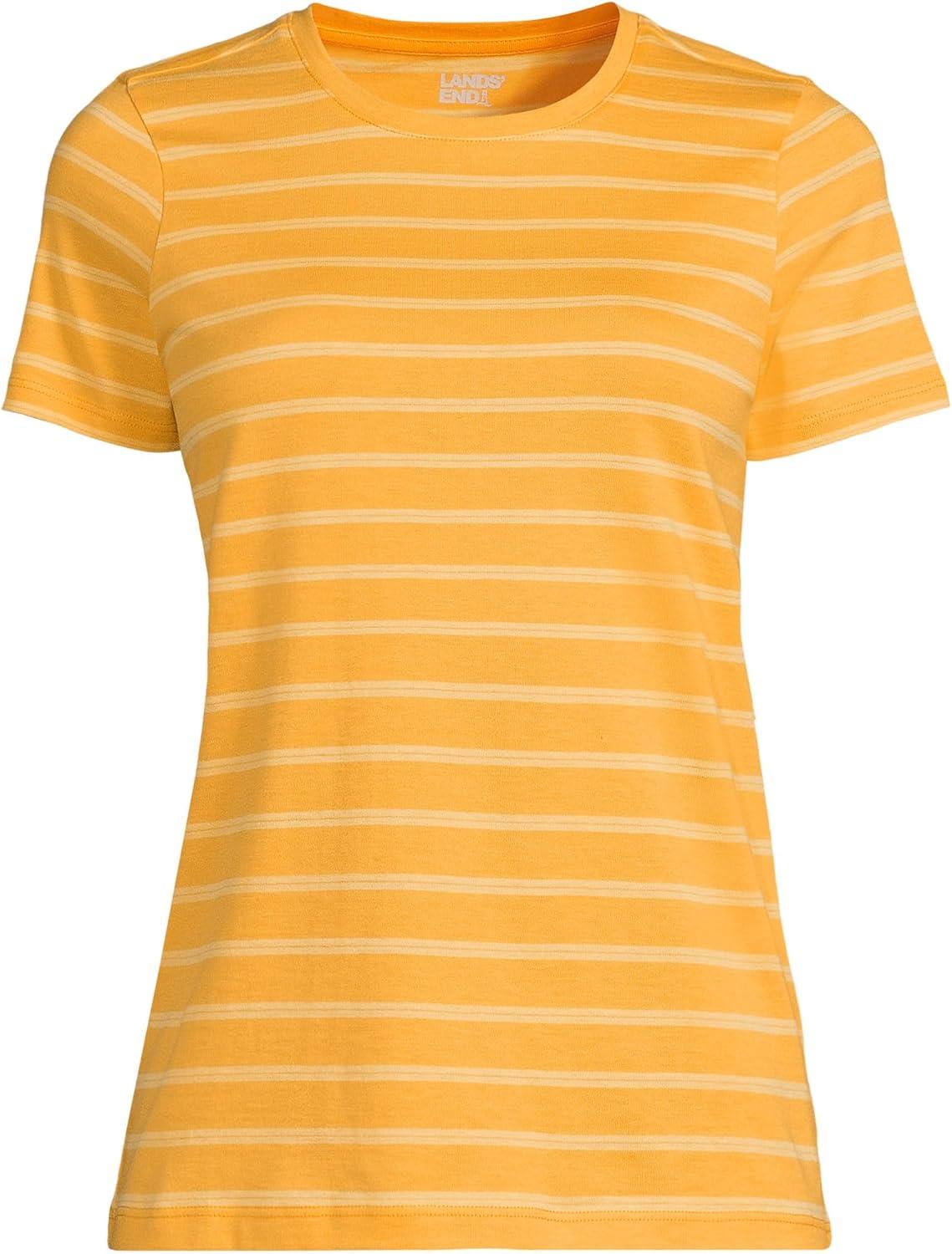Lands’ End Women’s Relaxed American-Grown Supima Cotton Crew Neck T-Shirt(Sweet Mango Dual Stripe)