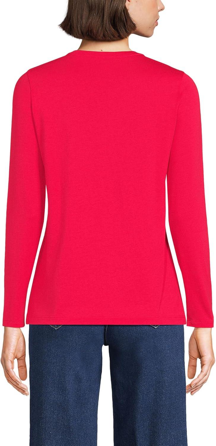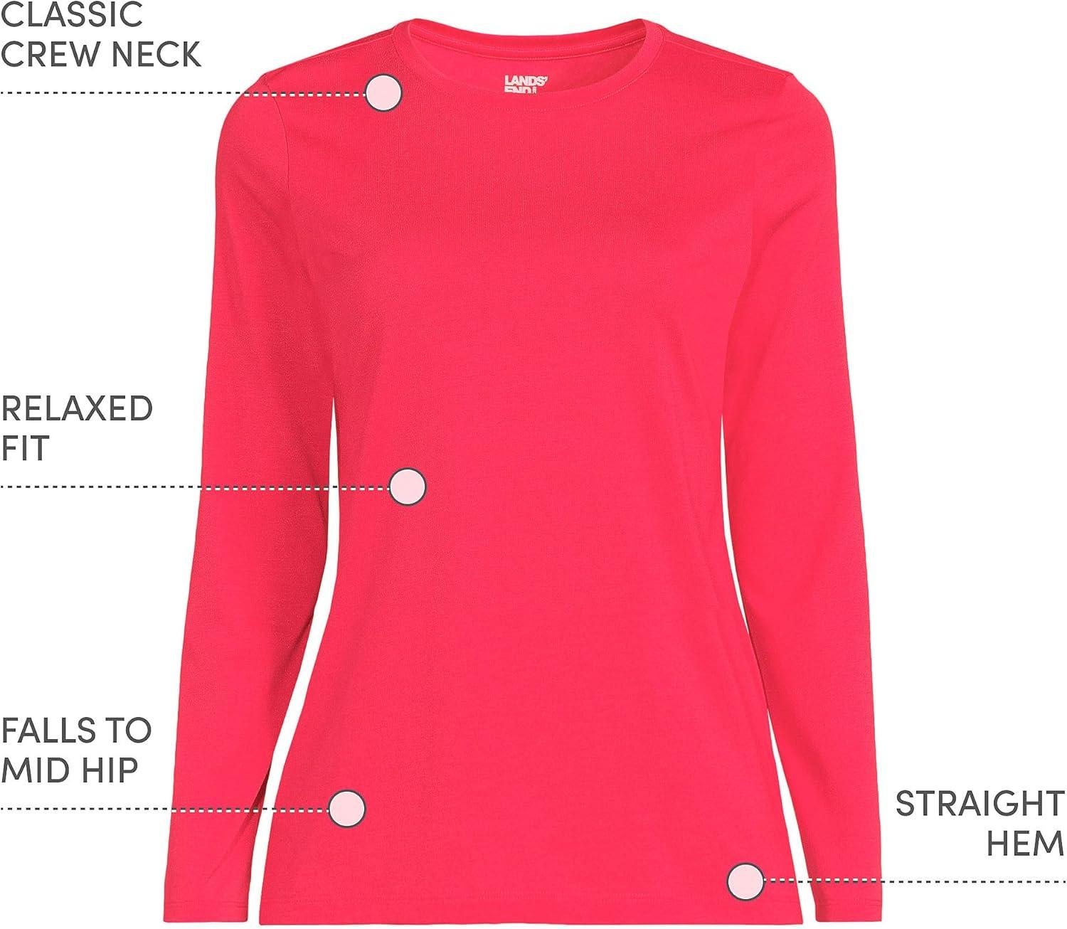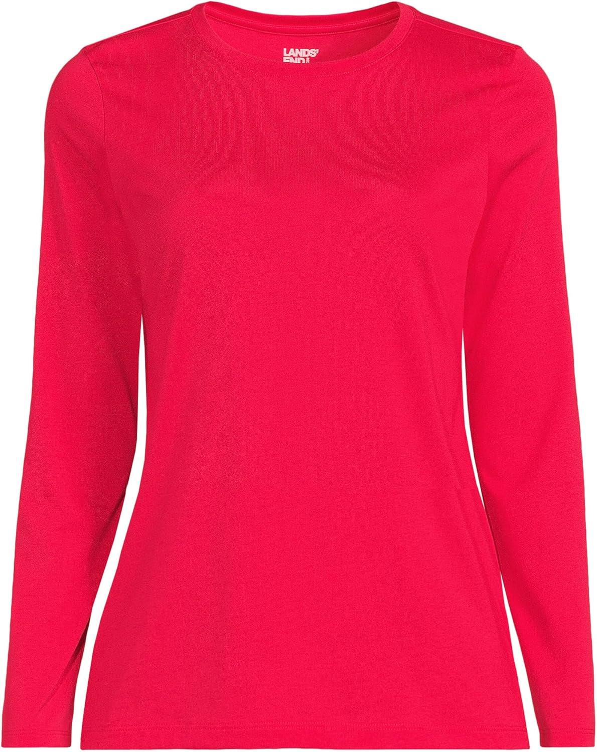 Lands’ End Women’s Relaxed American-Grown Supima Cotton Long Sleeve Crew Neck T-Shirt(Berry Rouge)