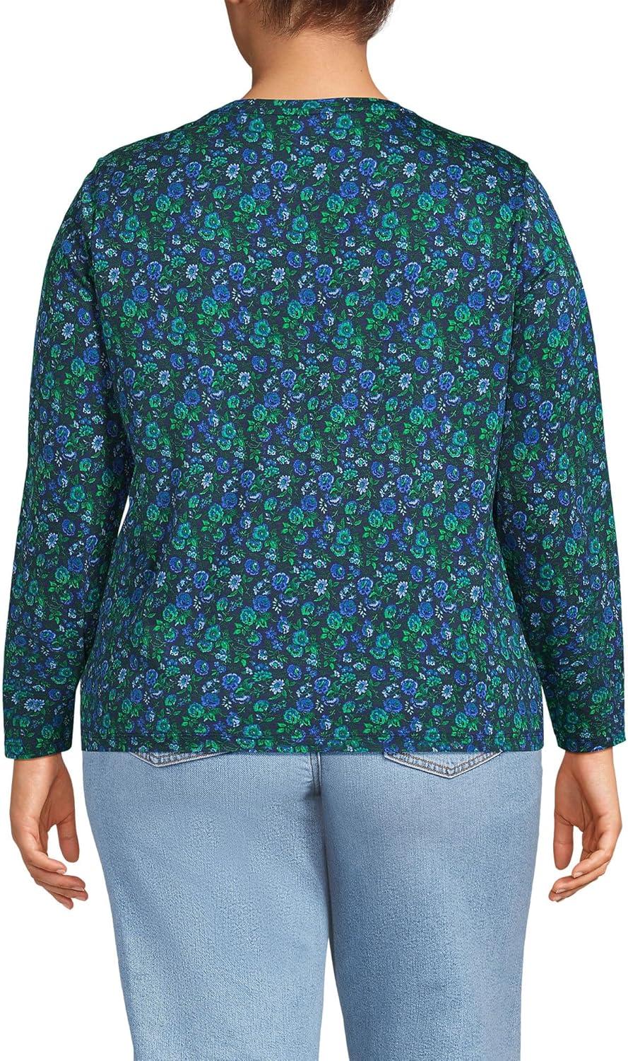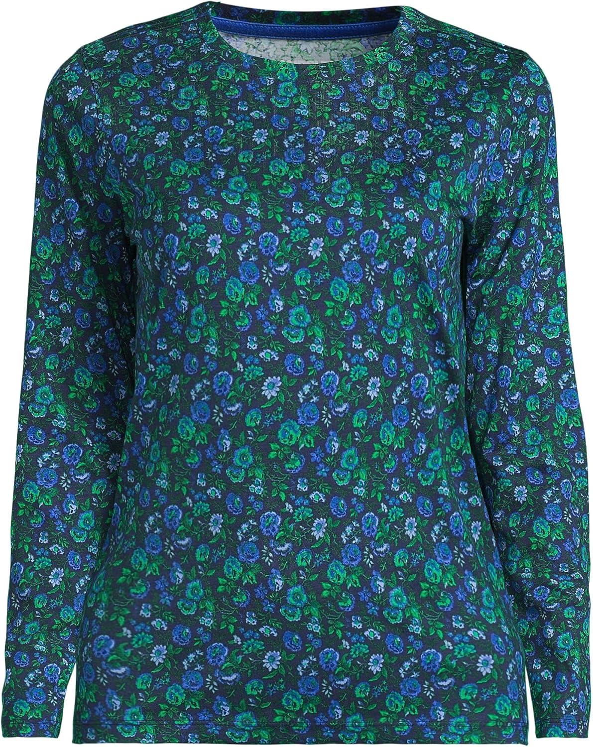 Lands’ End Women’s Relaxed American-Grown Supima Cotton Long Sleeve Crew Neck T-Shirt(Deep Sea/Vibrant Lapis Flowers)