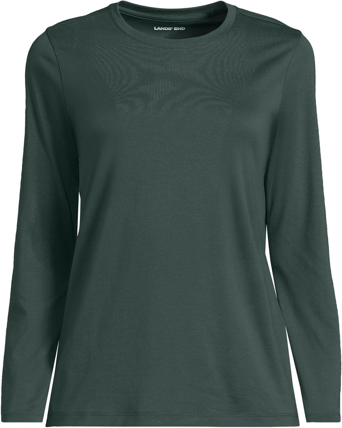 Lands’ End Women’s Relaxed American-Grown Supima Cotton Long Sleeve Crew Neck T-Shirt(Evening Forest)