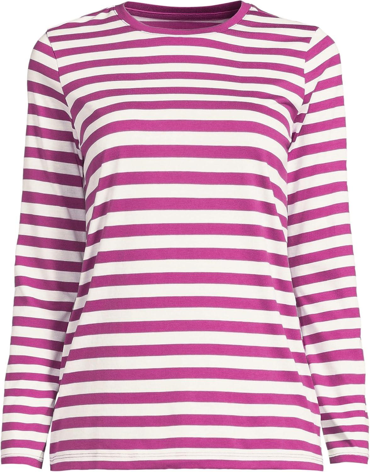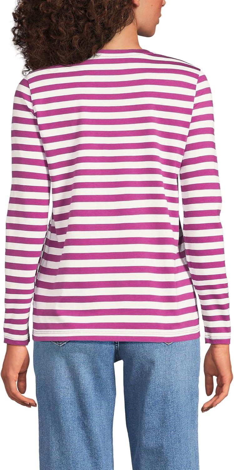 Lands’ End Women’s Relaxed American-Grown Supima Cotton Long Sleeve Crew Neck T-Shirt(Light Raspberry Even Stripe)