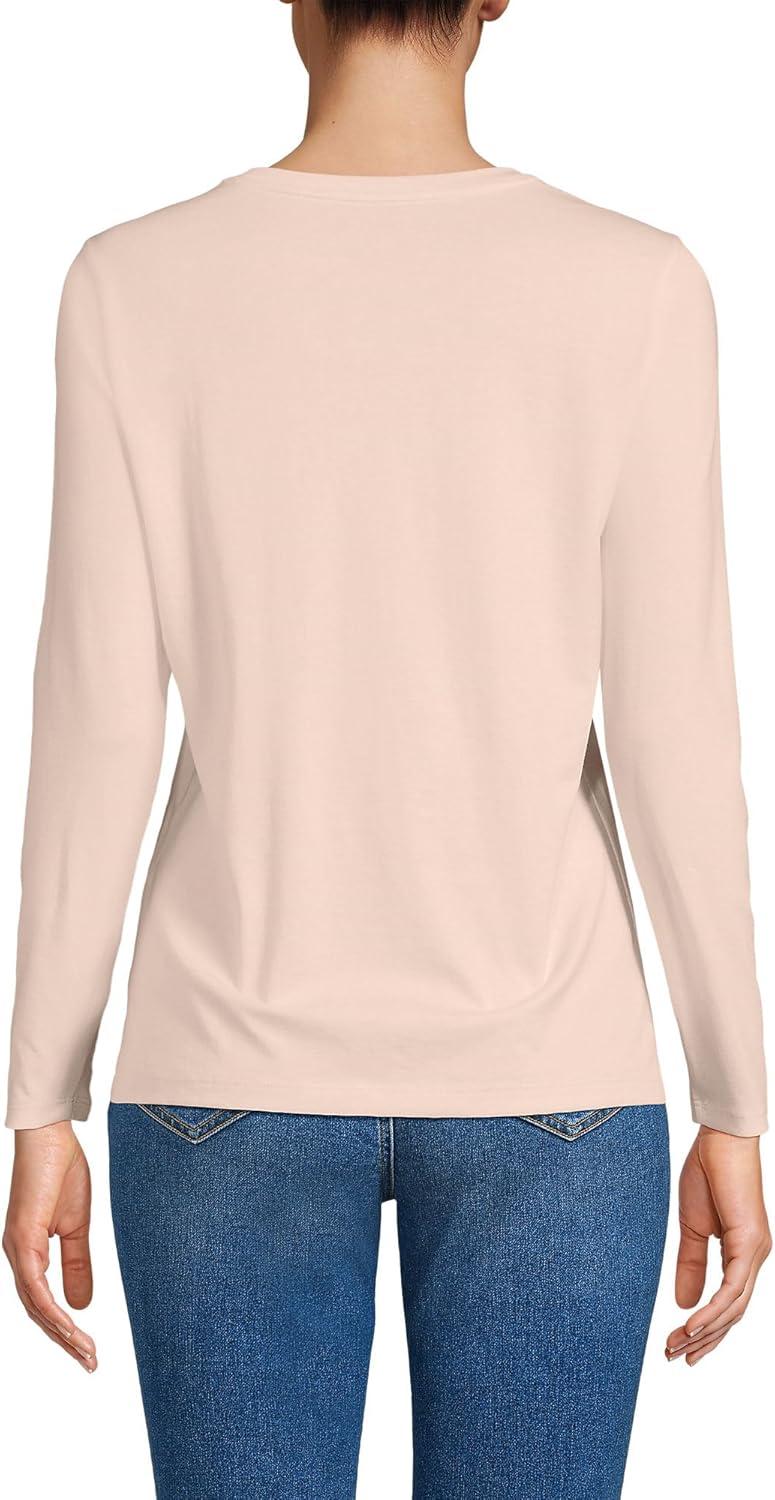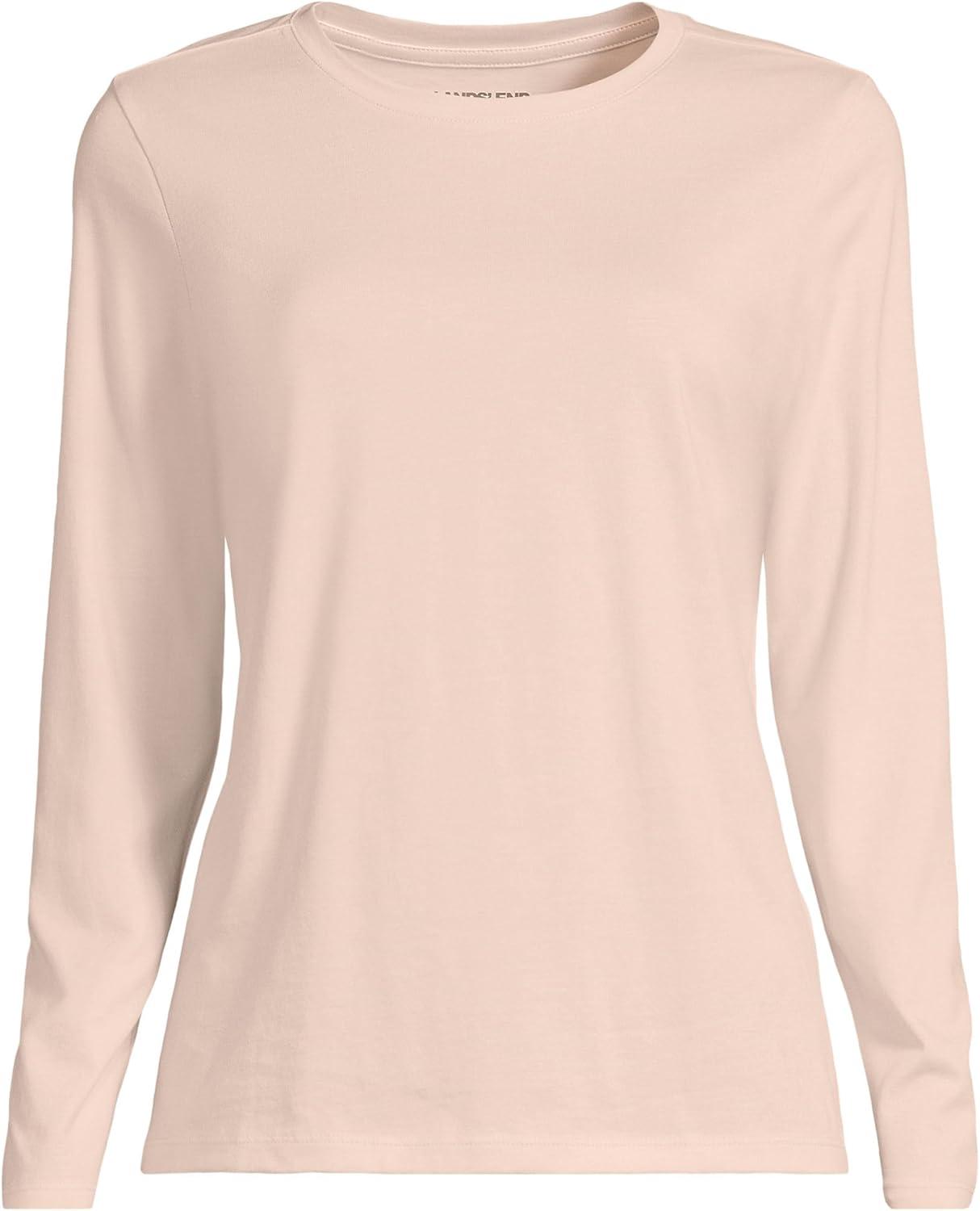 Lands’ End Women’s Relaxed American-Grown Supima Cotton Long Sleeve Crew Neck T-Shirt(Pink Opal)