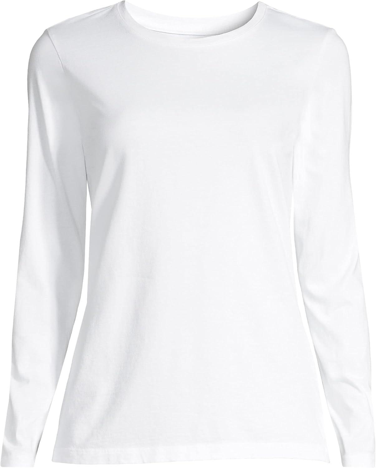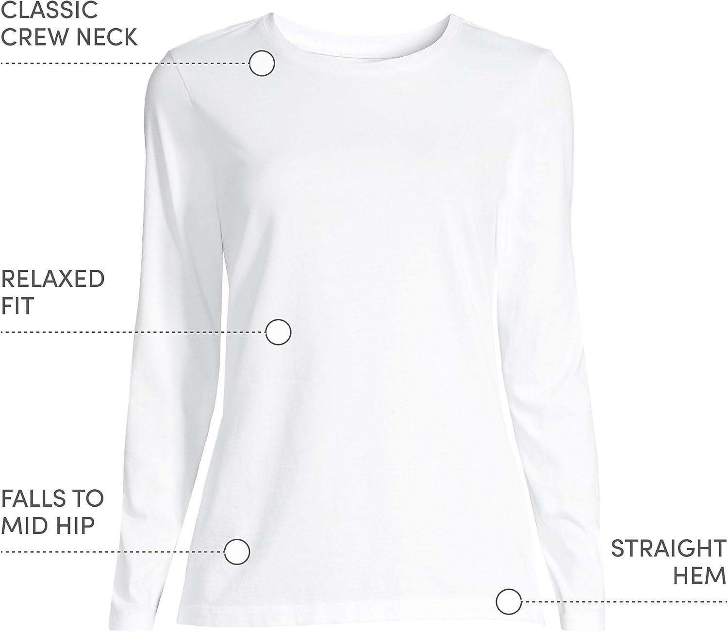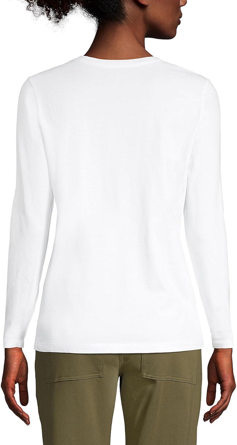 Lands’ End Women’s Relaxed American-Grown Supima Cotton Long Sleeve Crew Neck T-Shirt(White)