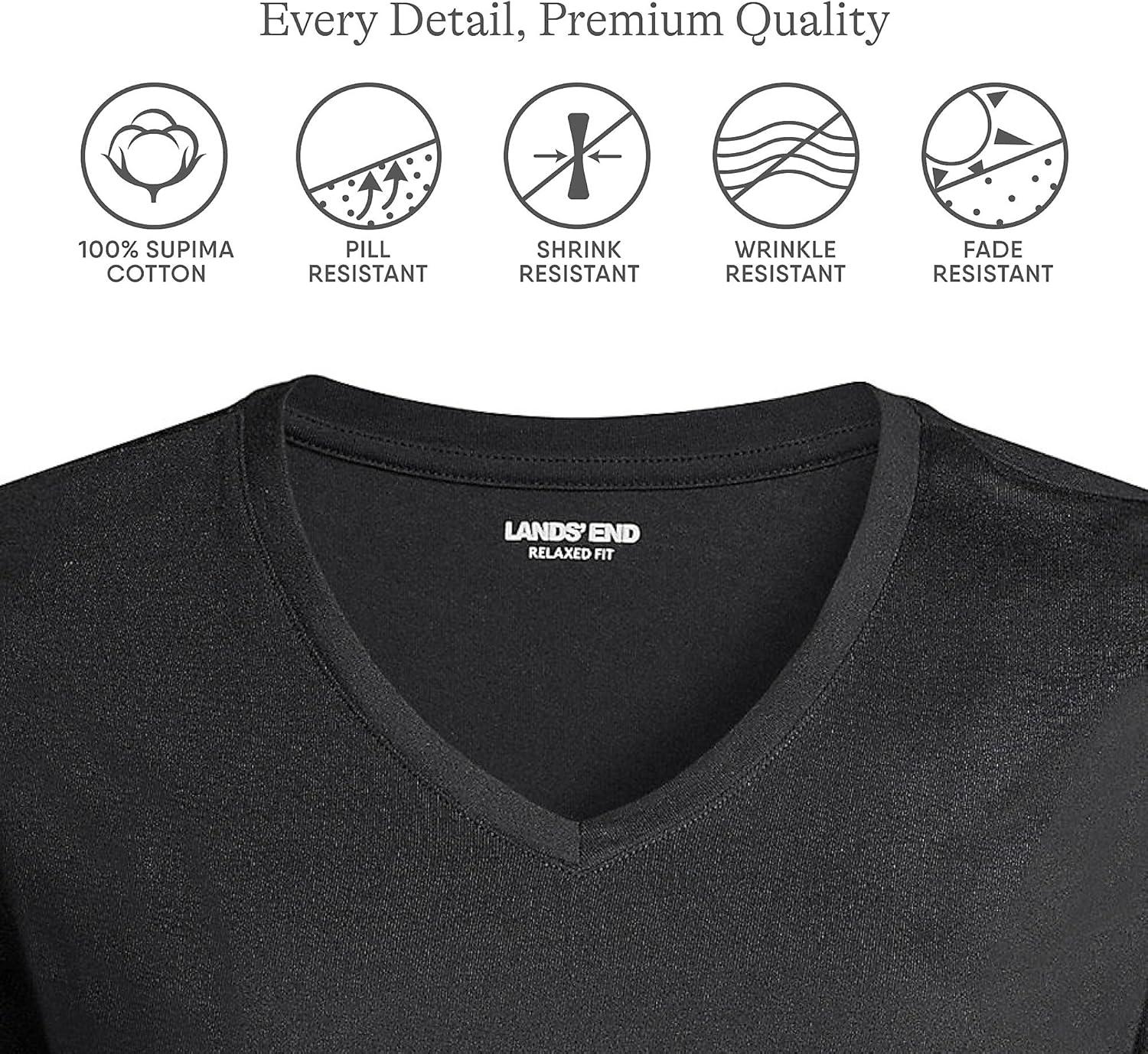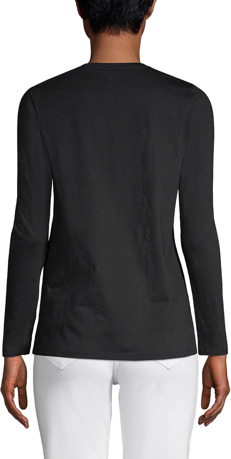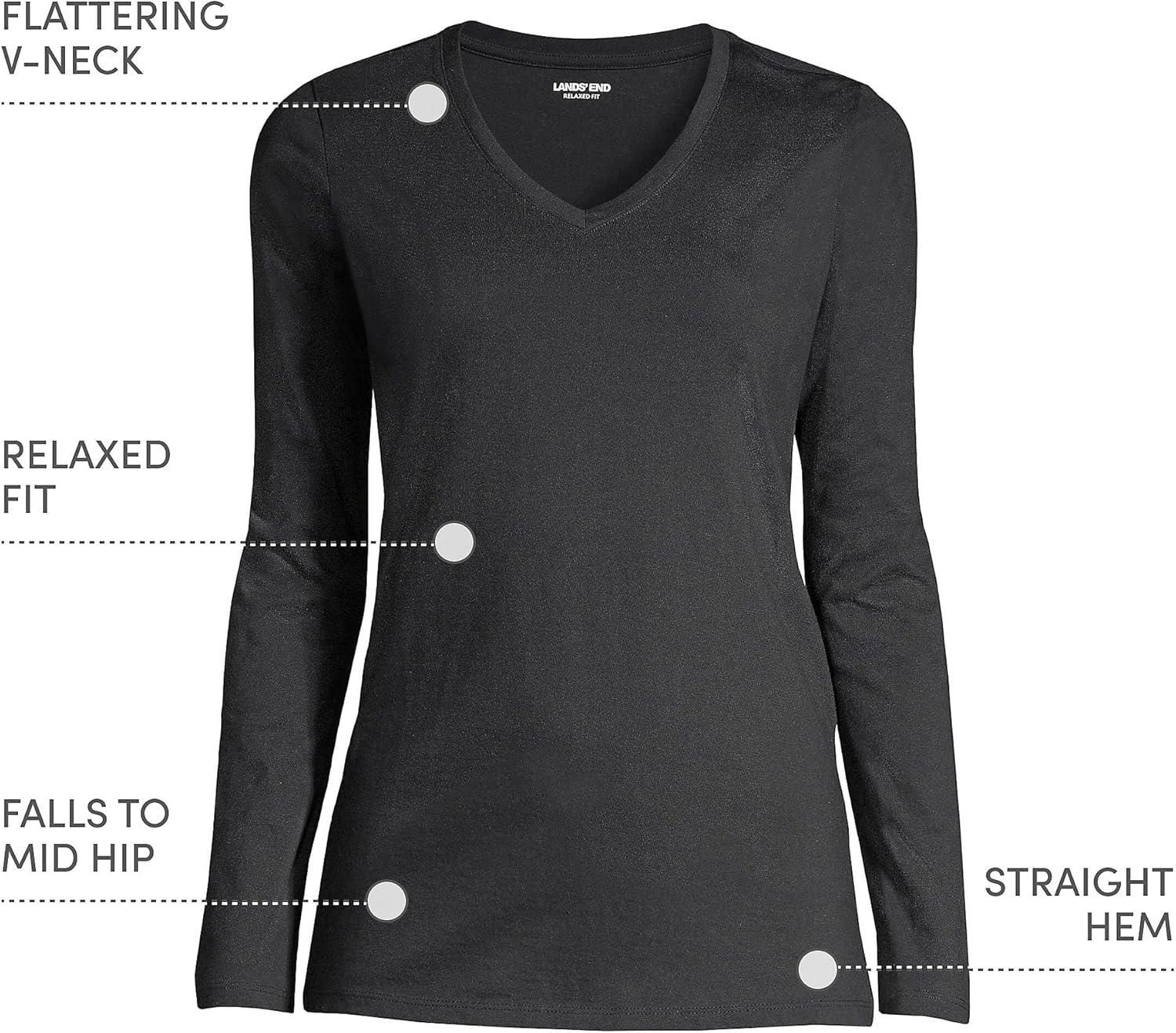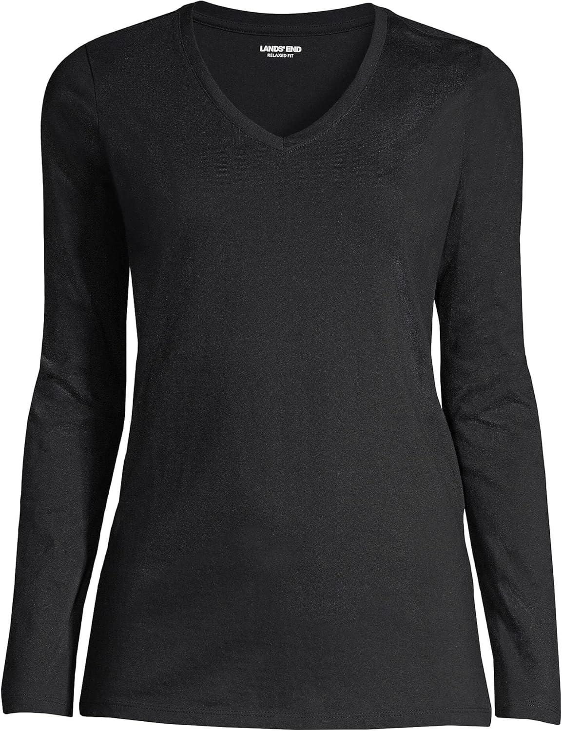 Lands’ End Women’s Relaxed American-Grown Supima Cotton Long Sleeve V-Neck T-Shirt(Black)