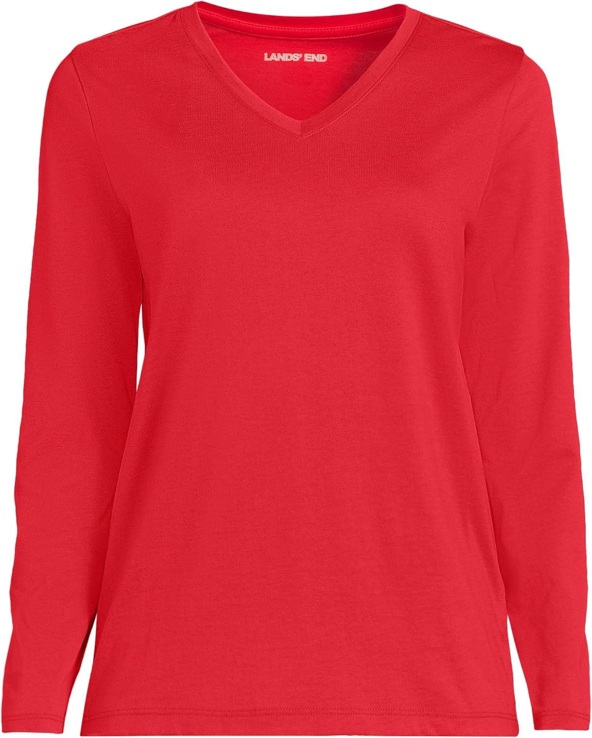 Lands’ End Women’s Relaxed American-Grown Supima Cotton Long Sleeve V-Neck T-Shirt(Compass Red)