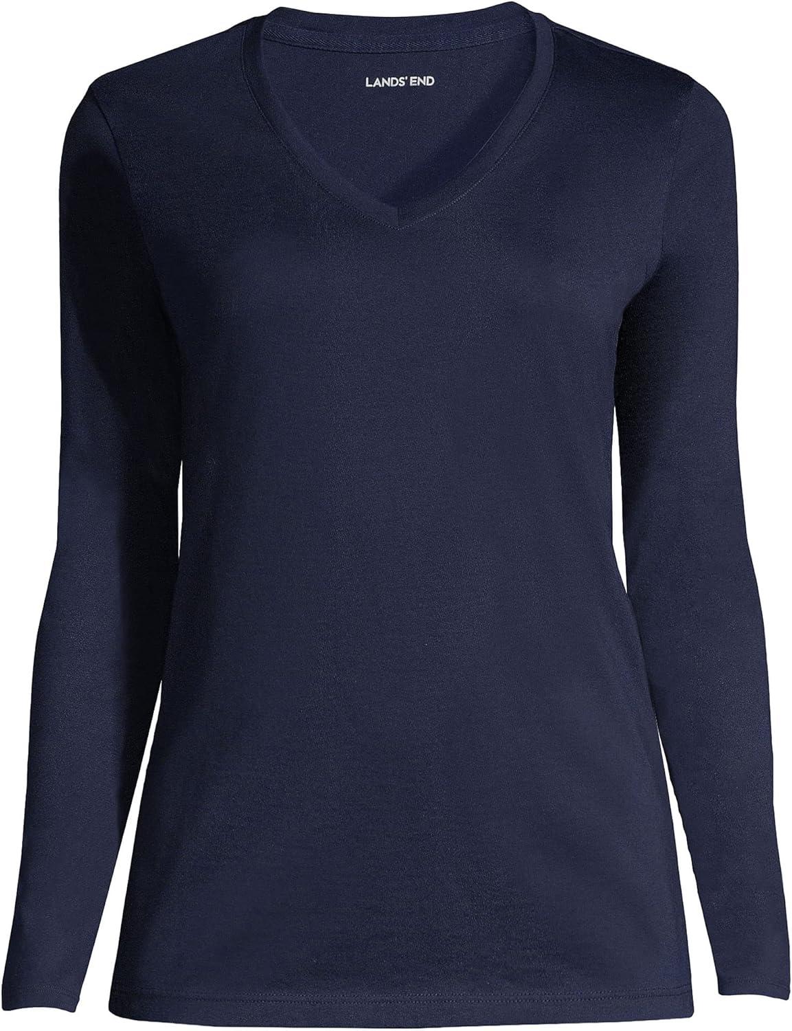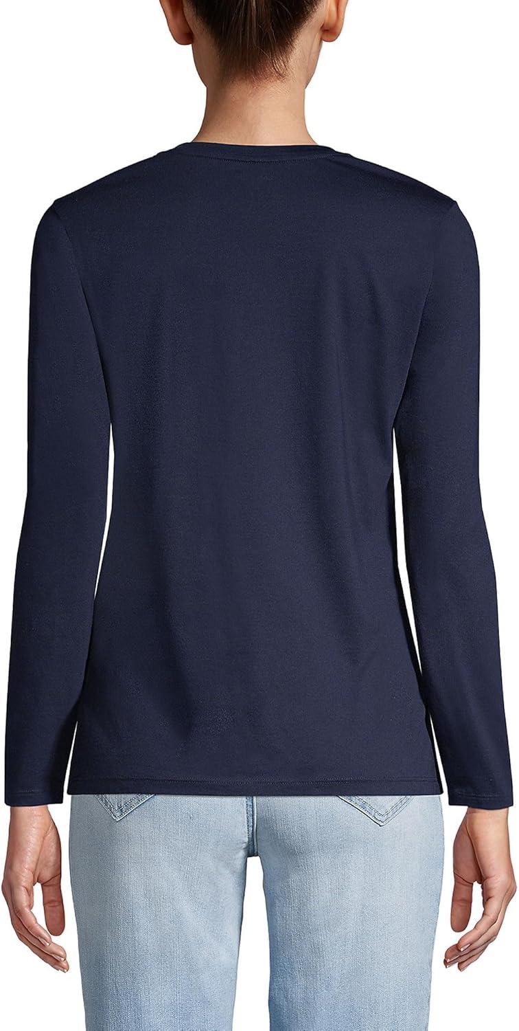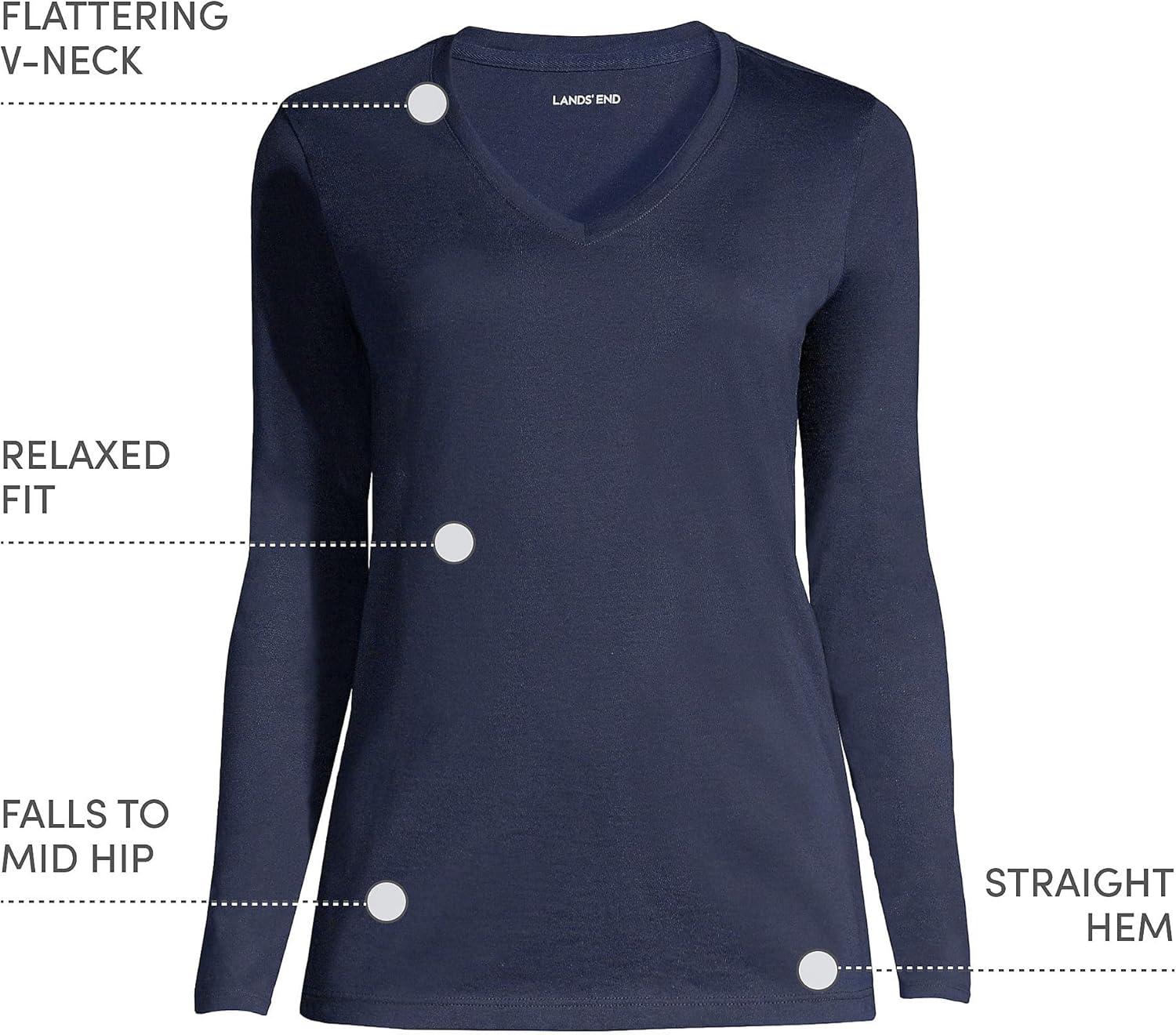 Lands’ End Women’s Relaxed American-Grown Supima Cotton Long Sleeve V-Neck T-Shirt(Radiant Navy)