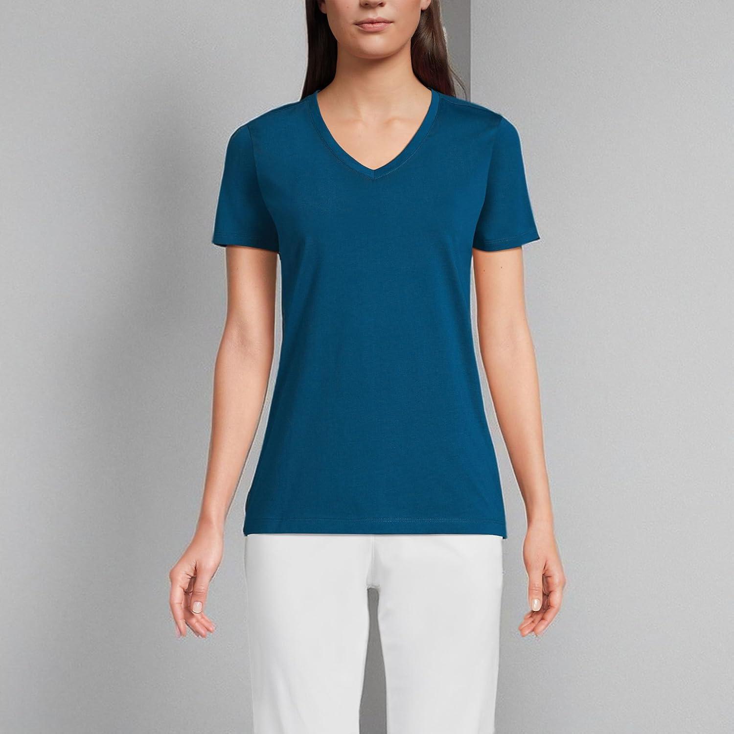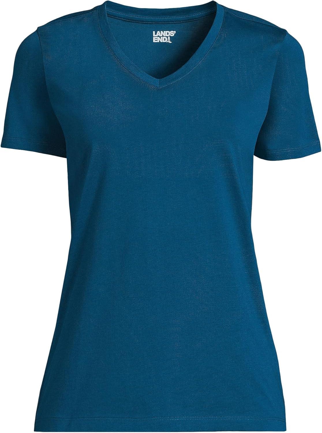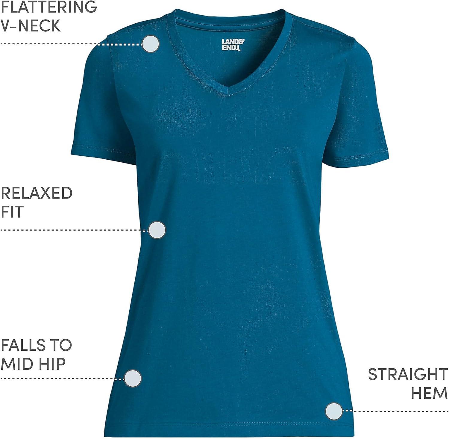 Lands’ End Women’s Relaxed American-Grown Supima Cotton V-Neck T-Shirt(Baltic Teal)