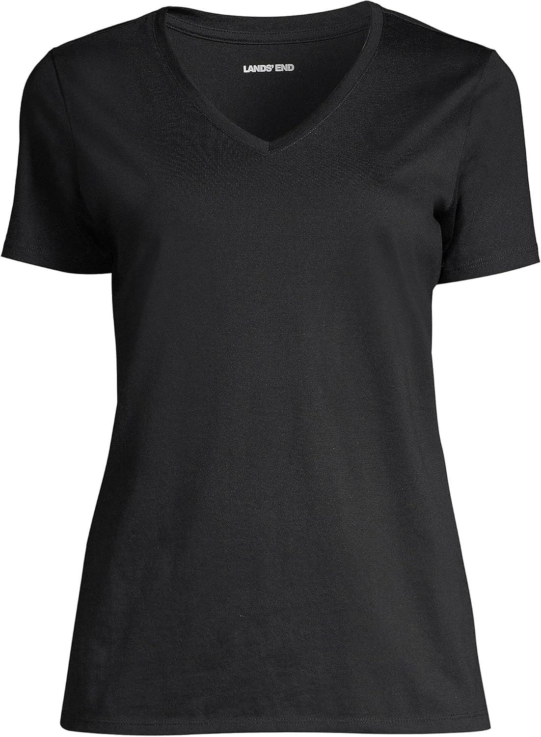 Lands’ End Women’s Relaxed American-Grown Supima Cotton V-Neck T-Shirt(Black)