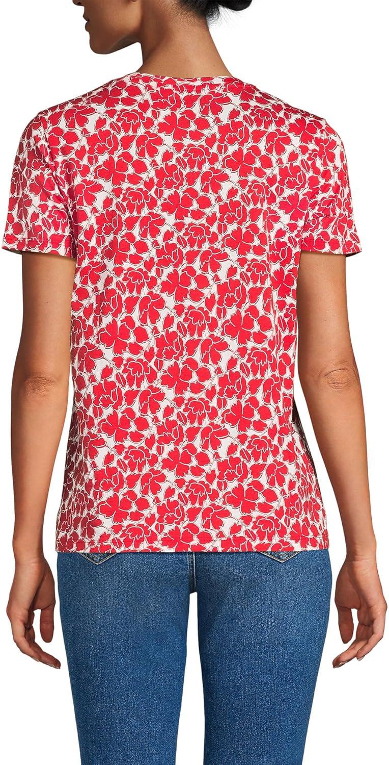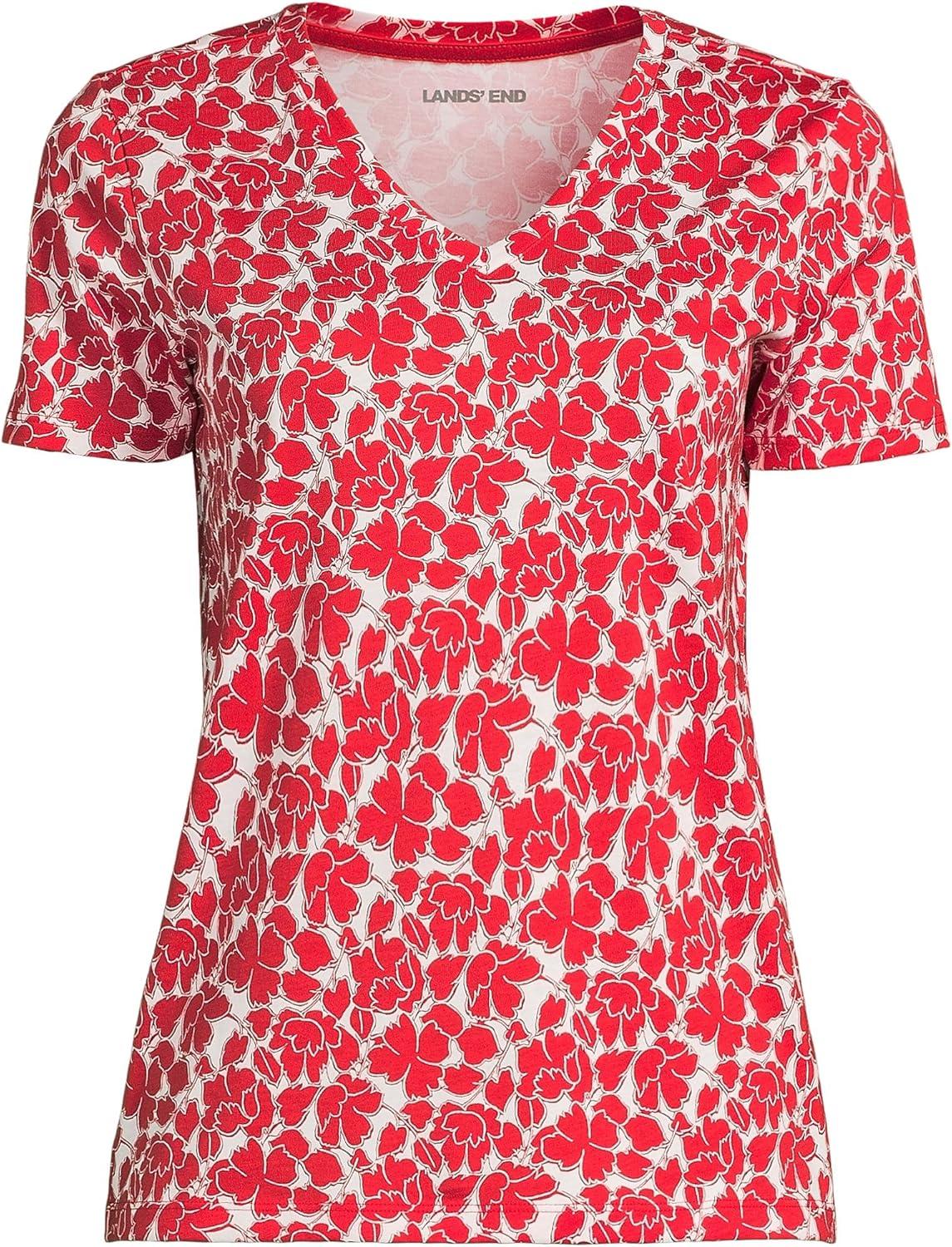 Lands’ End Women’s Relaxed American-Grown Supima Cotton V-Neck T-Shirt(Coral Red Tossed Floral)