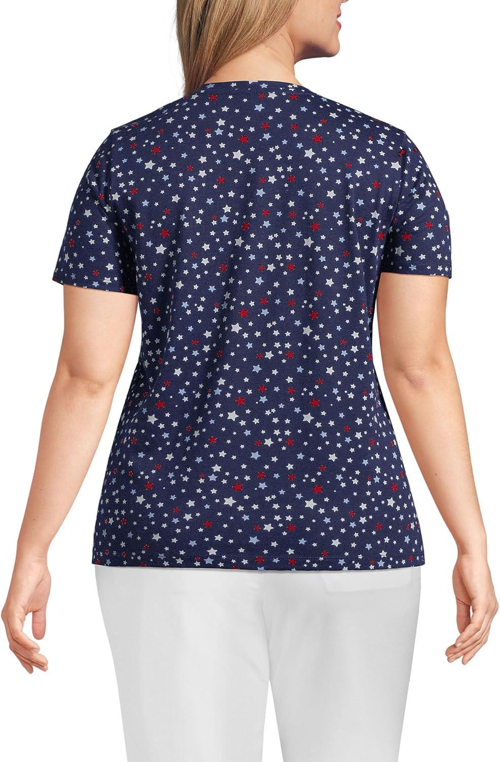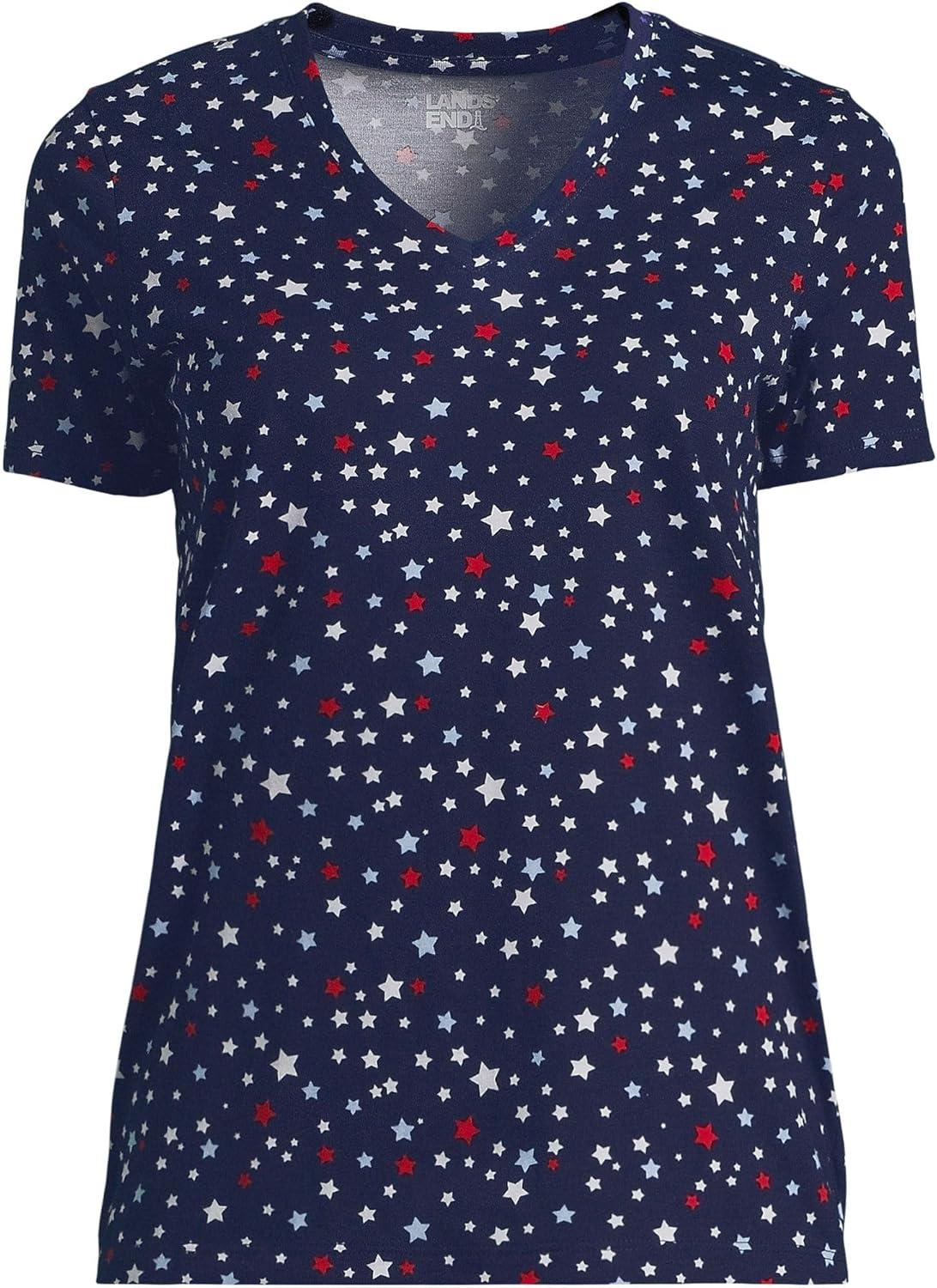 Lands’ End Women’s Relaxed American-Grown Supima Cotton V-Neck T-Shirt(Deep Sea Navy Stars)