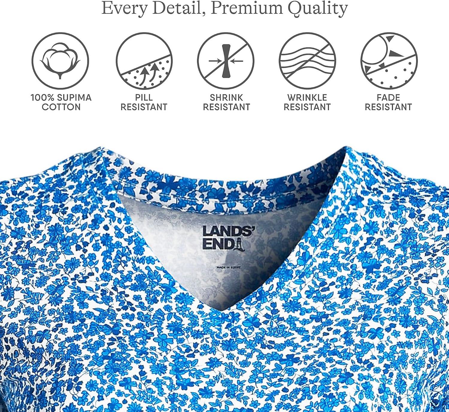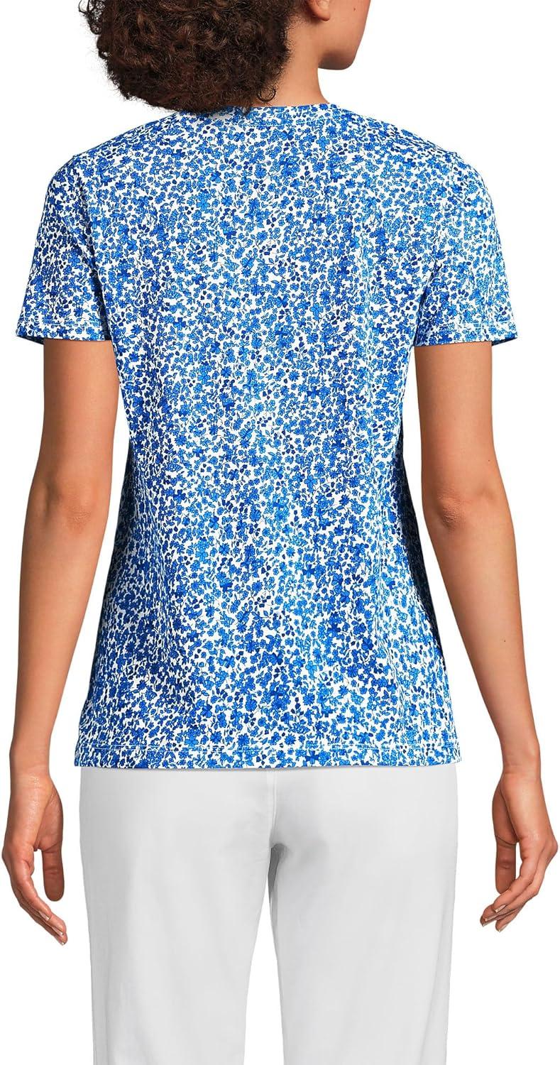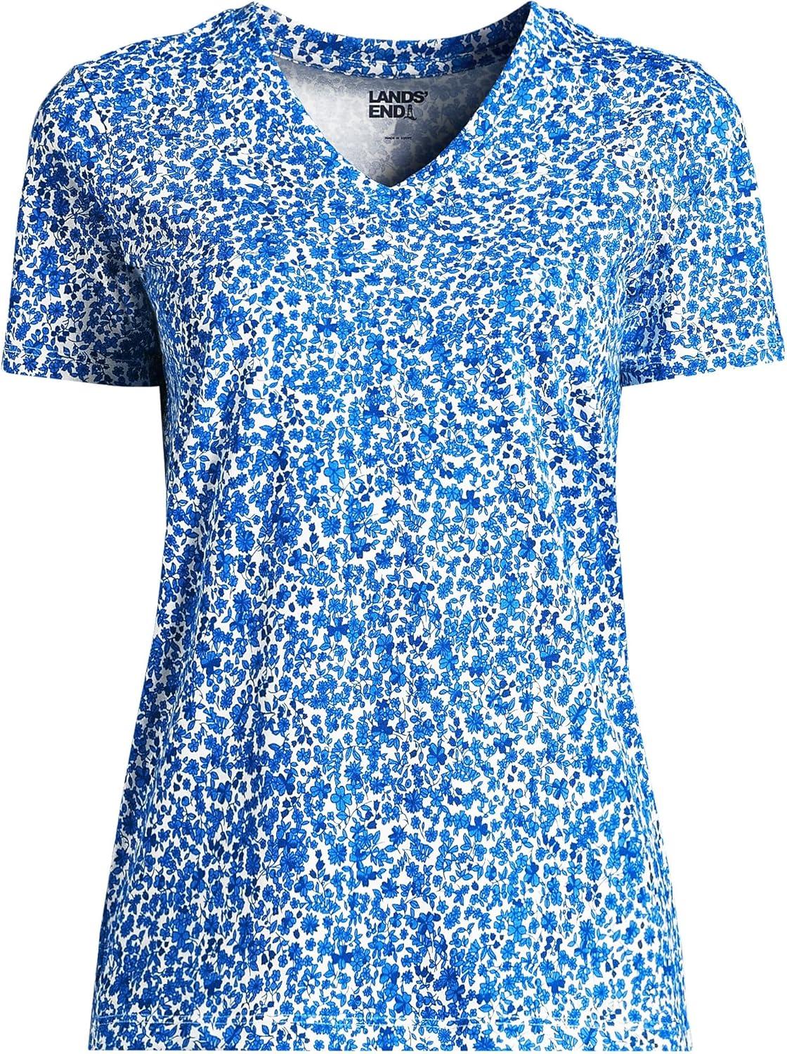 Lands’ End Women’s Relaxed American-Grown Supima Cotton V-Neck T-Shirt(Ivory/Vista Blue Flowers)