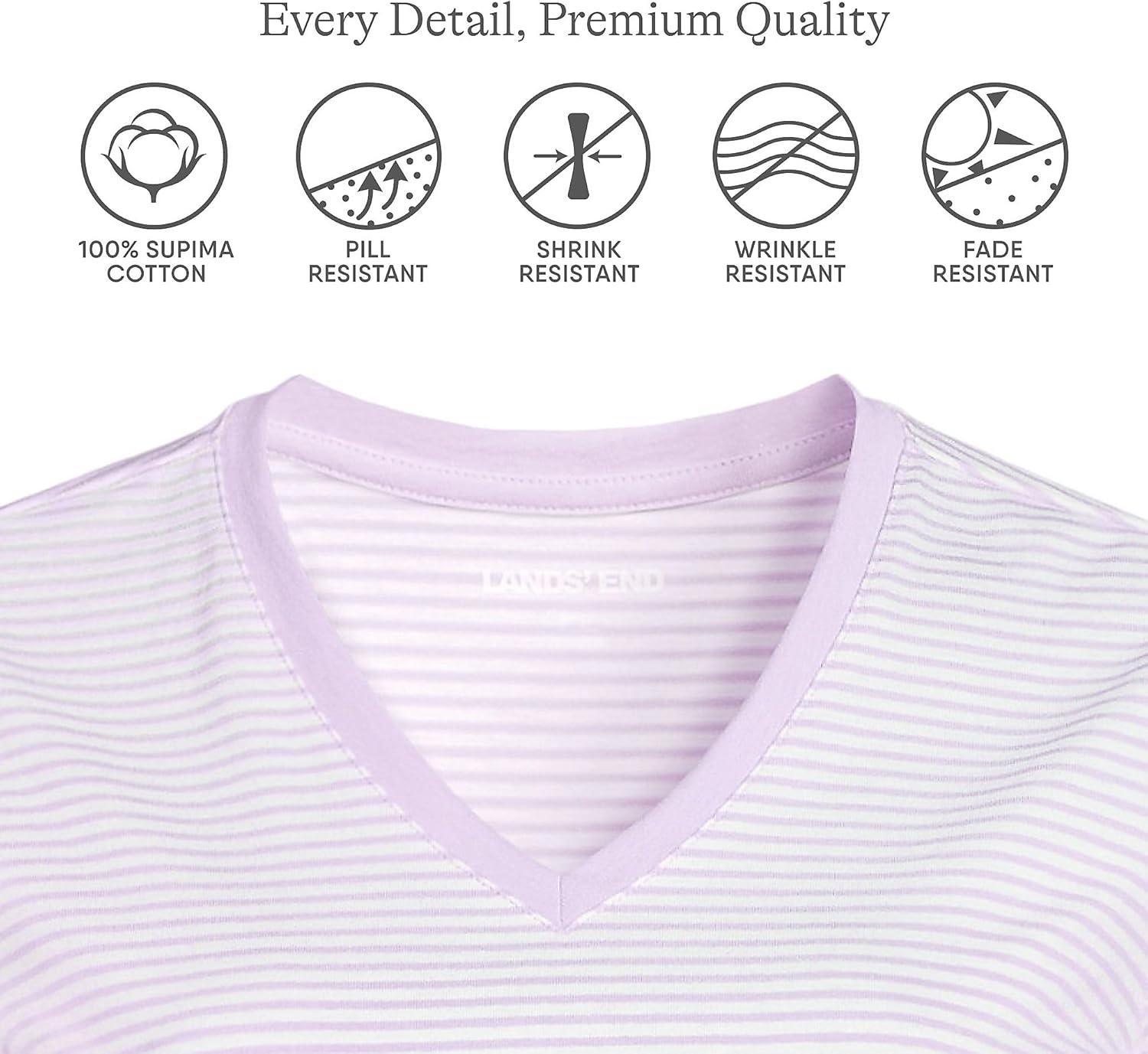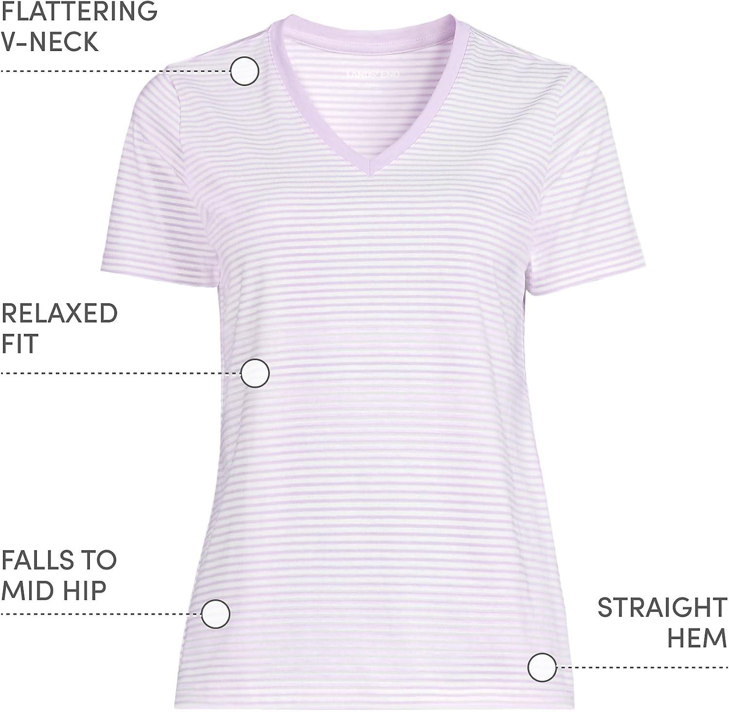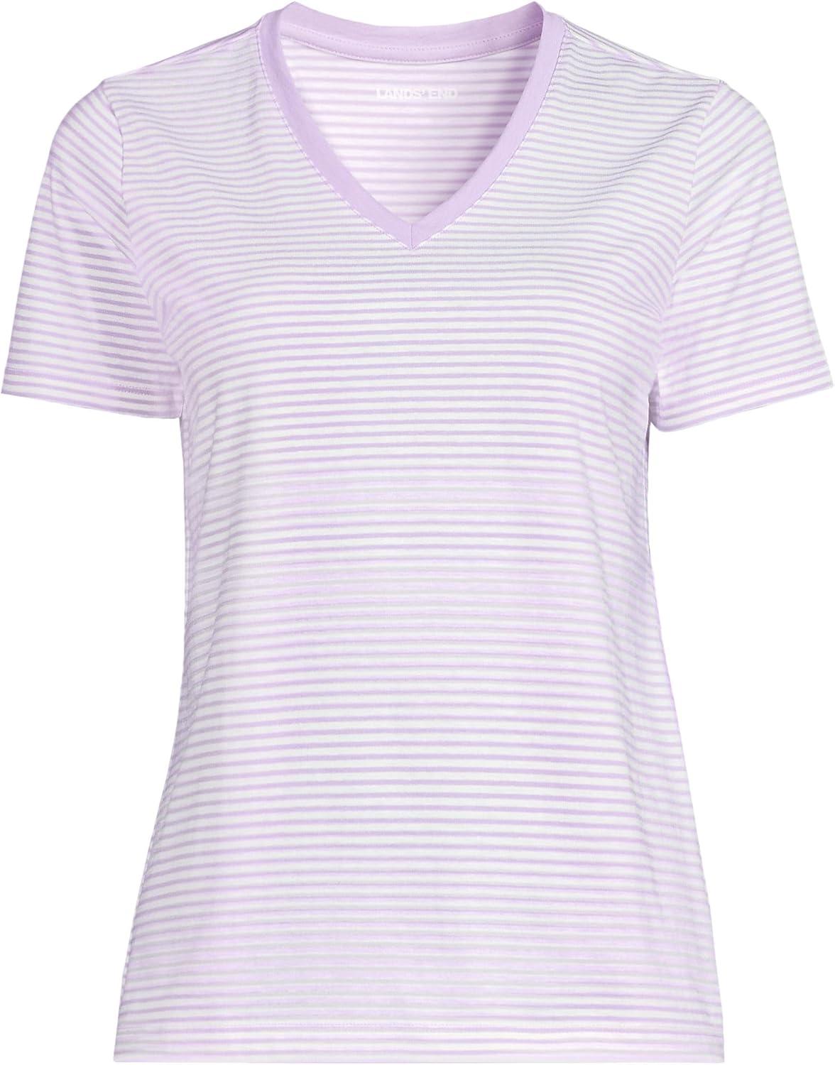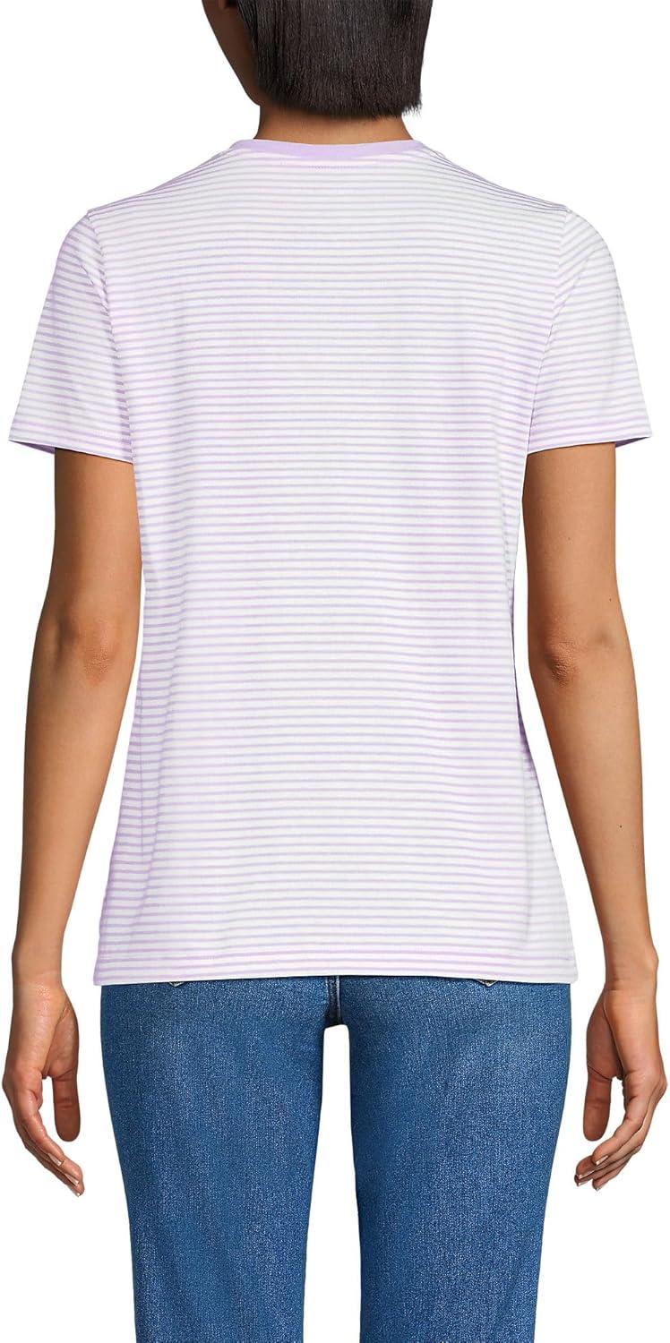 Lands’ End Women’s Relaxed American-Grown Supima Cotton V-Neck T-Shirt(Lilac Petal/Ivory Micro Stripe)