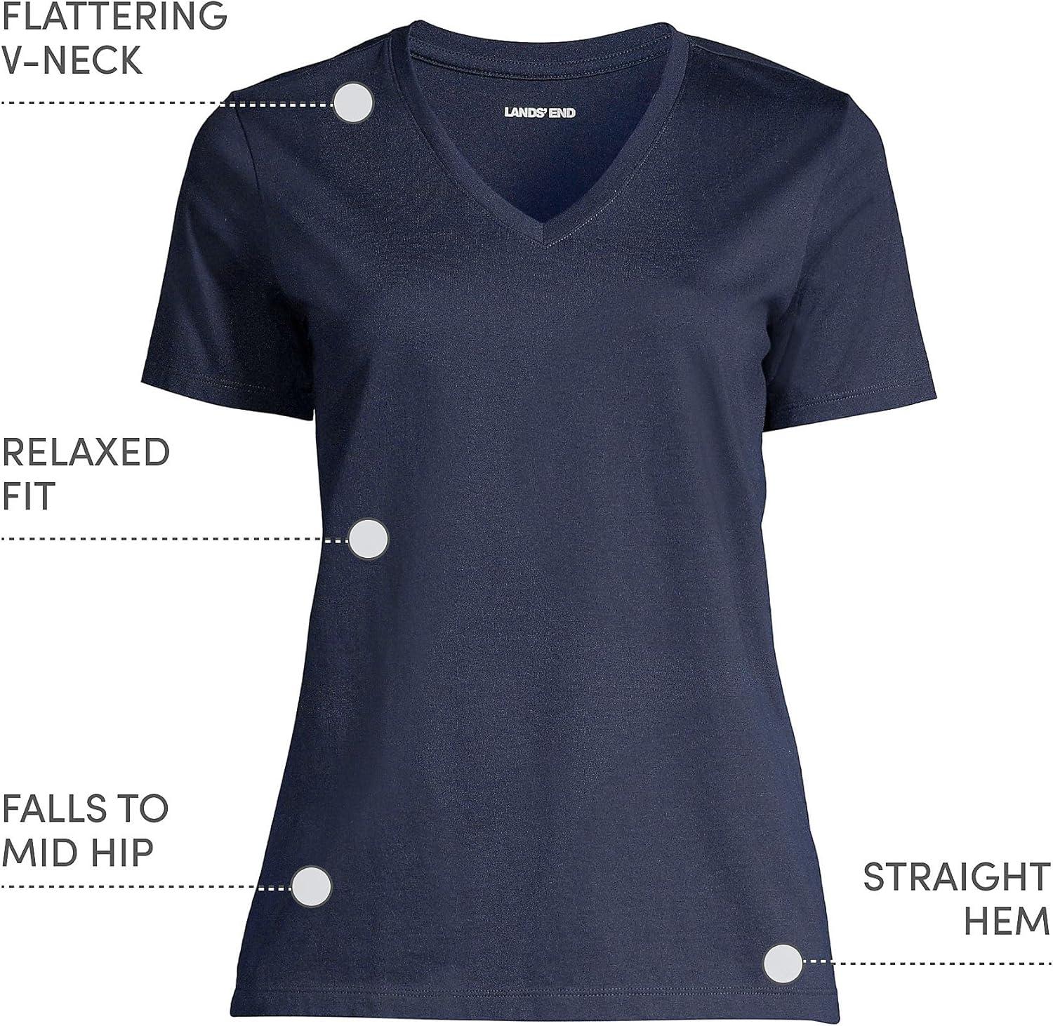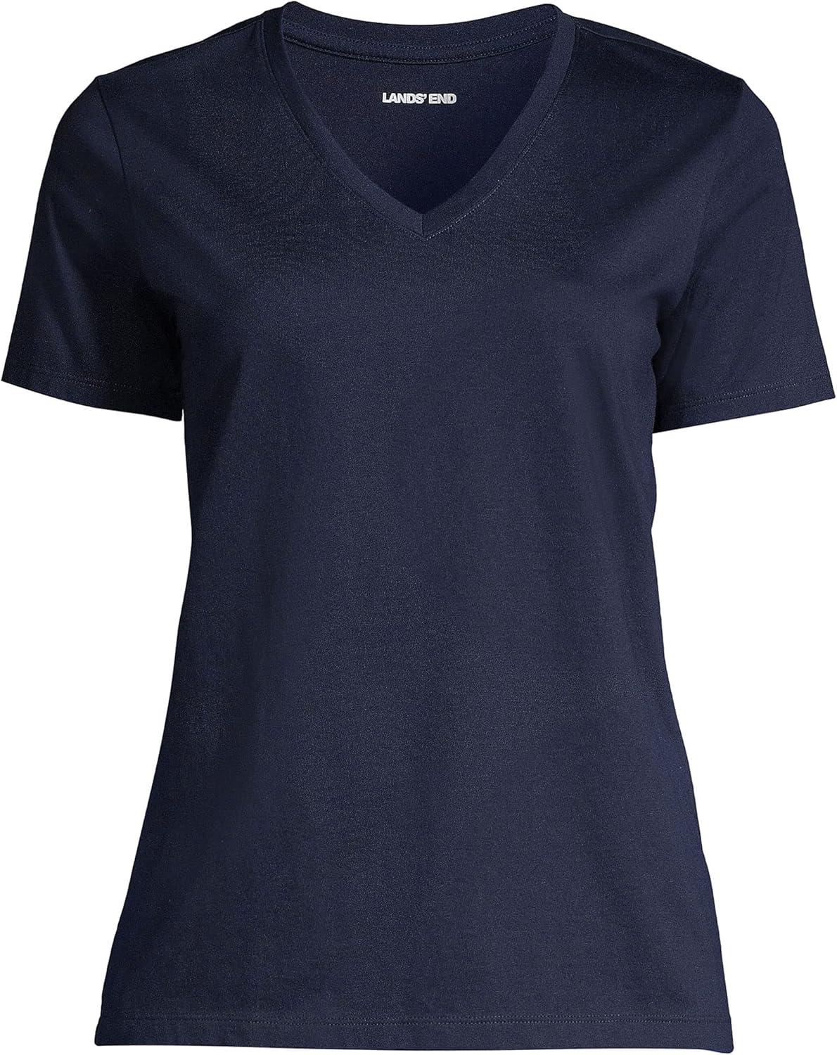 Lands’ End Women’s Relaxed American-Grown Supima Cotton V-Neck T-Shirt(Radiant Navy)