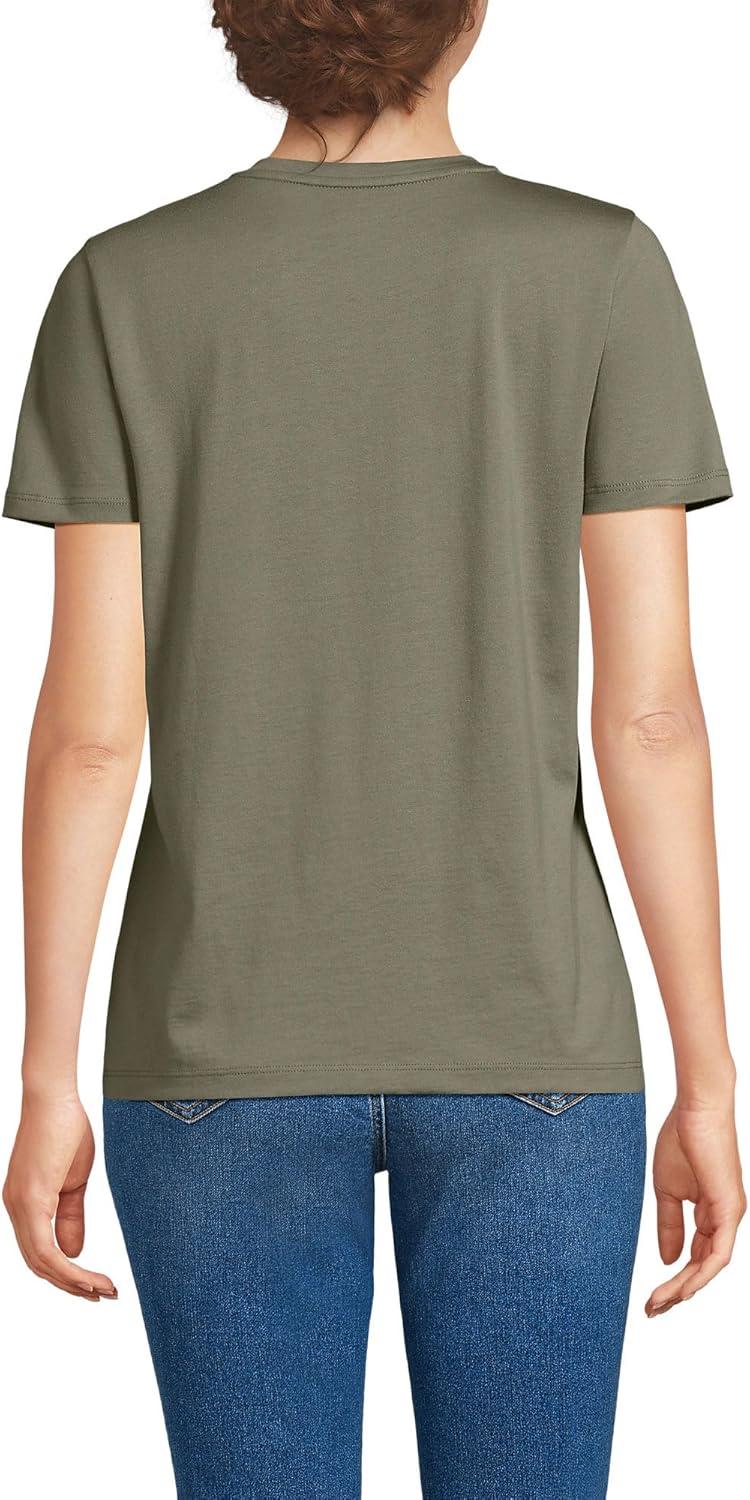 Lands’ End Women’s Relaxed American-Grown Supima Cotton V-Neck T-Shirt(Soft Olive Drab)
