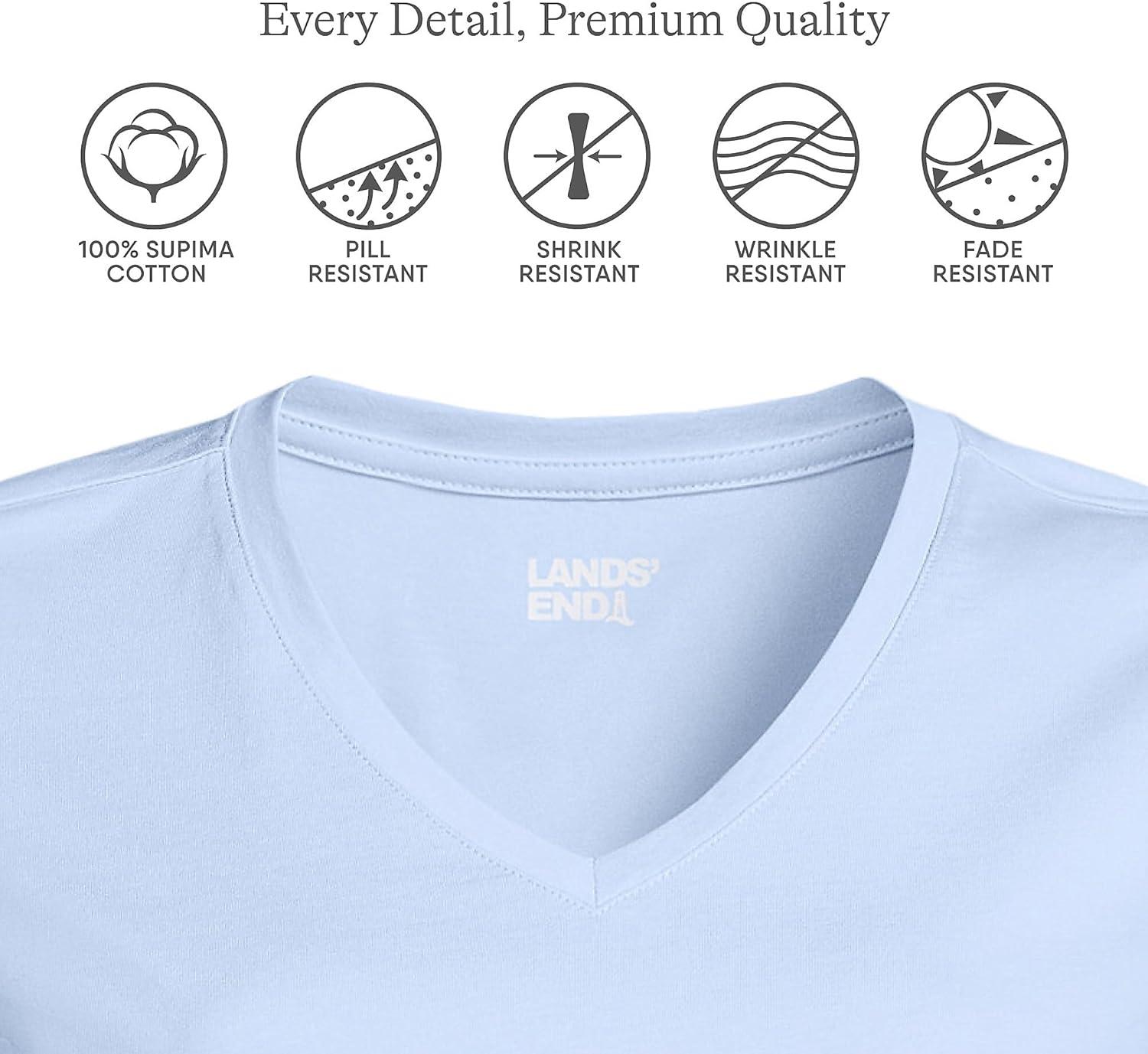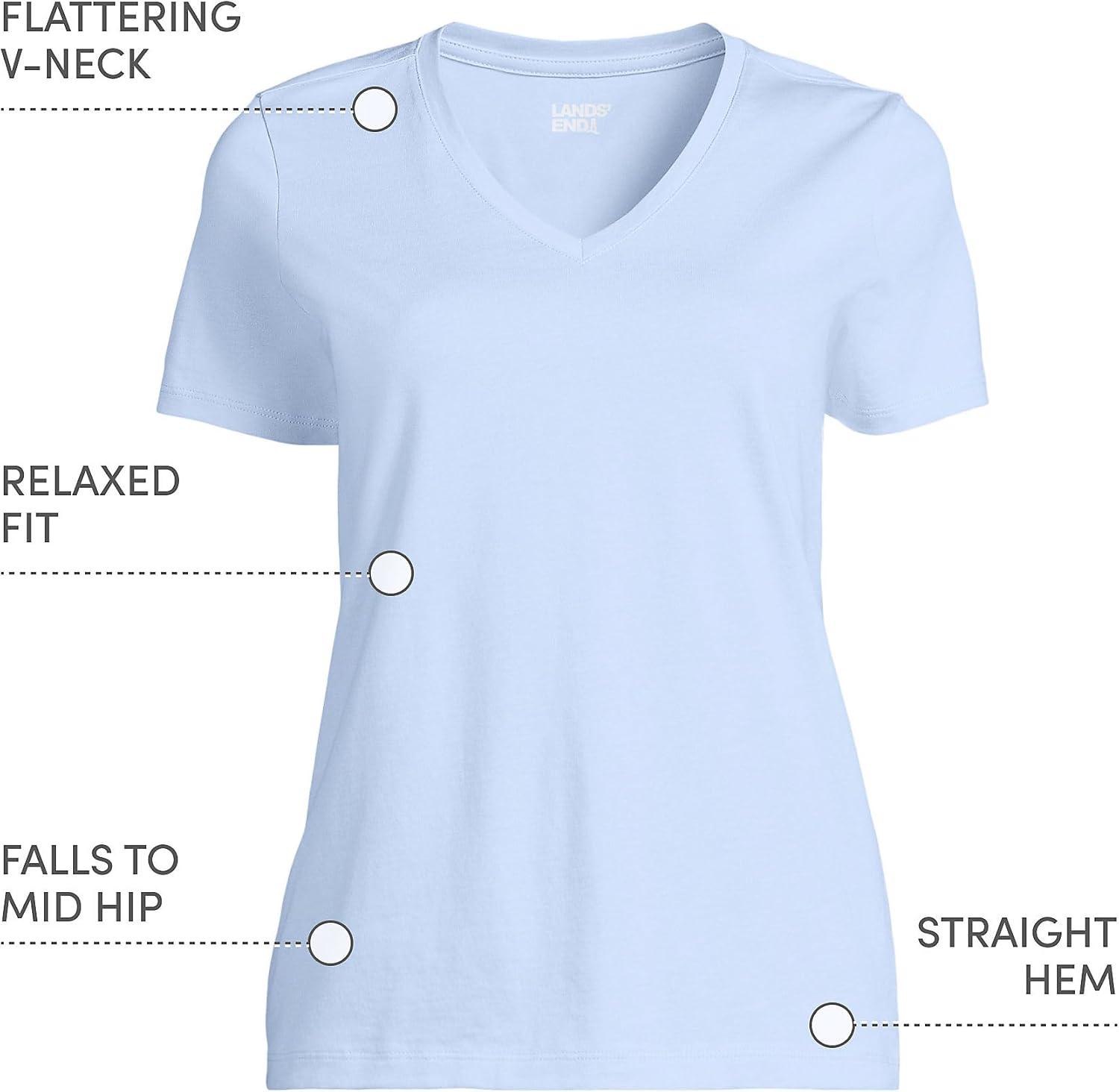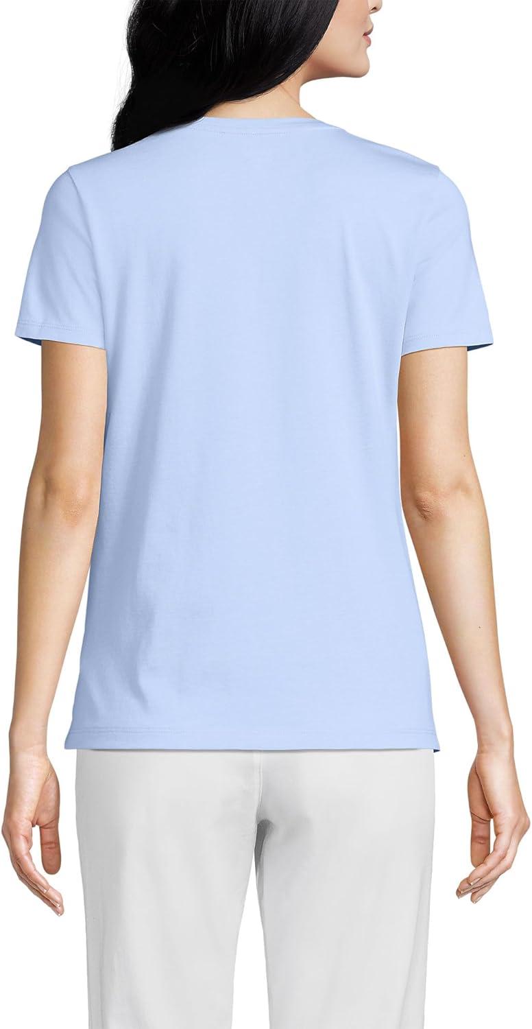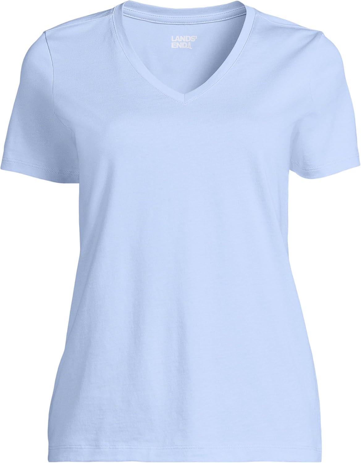 Lands’ End Women’s Relaxed American-Grown Supima Cotton V-Neck T-Shirt(Soft Sky Blue)