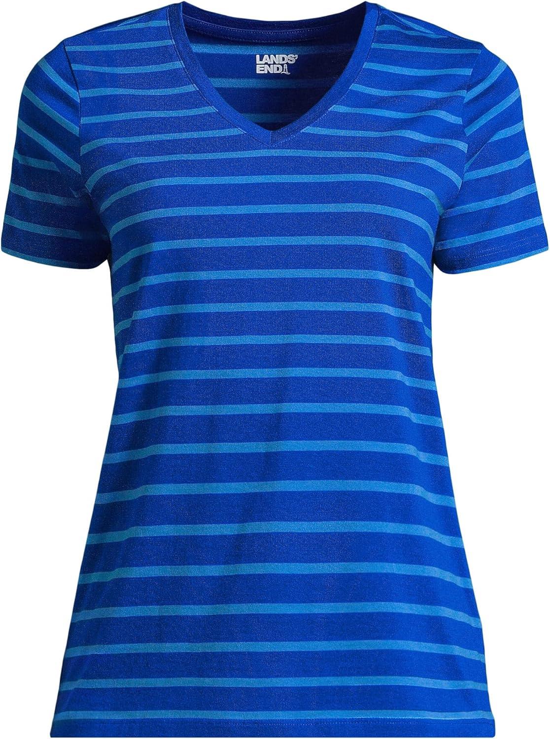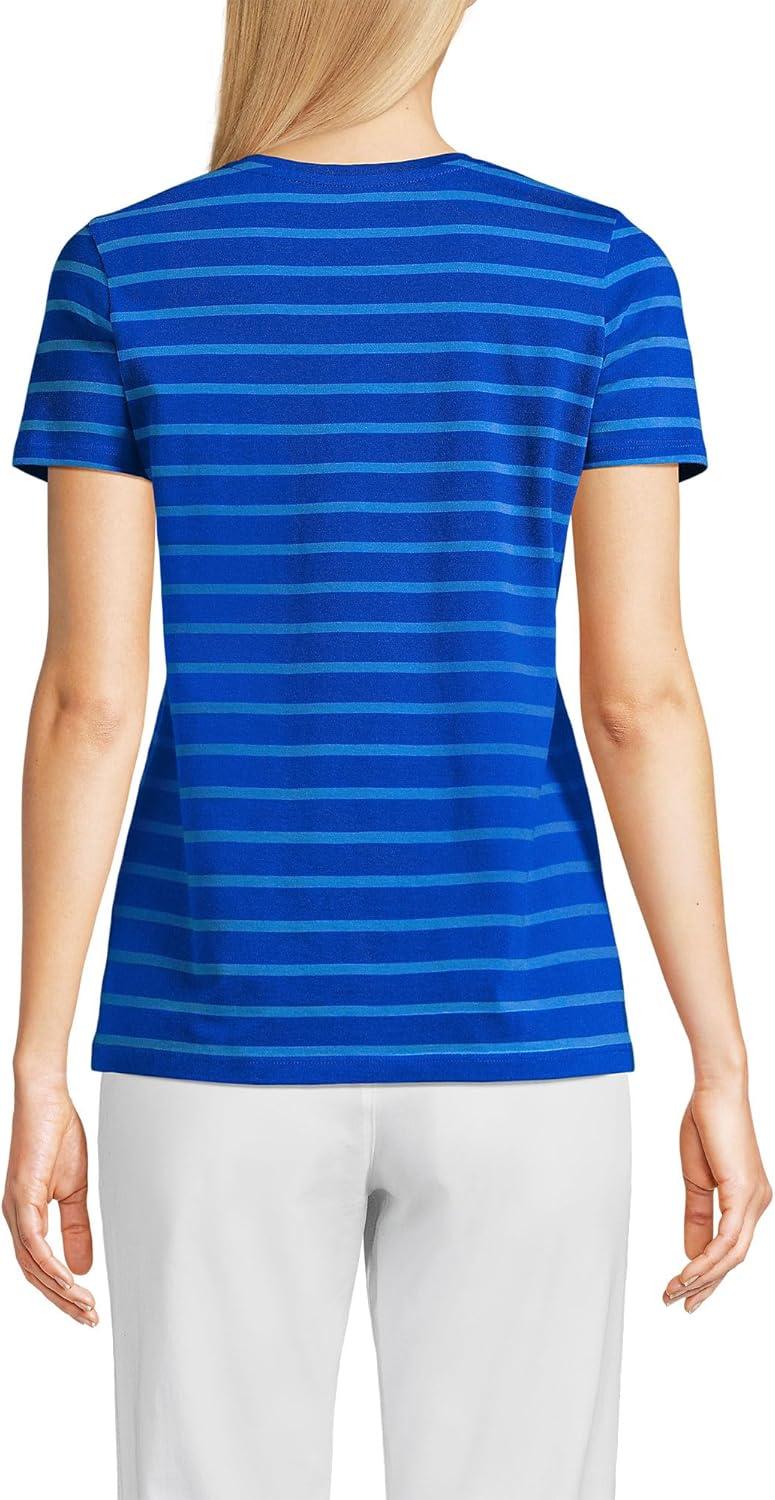 Lands’ End Women’s Relaxed American-Grown Supima Cotton V-Neck T-Shirt(True Cobalt Blue Breton Stripe)