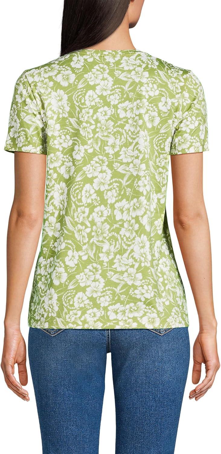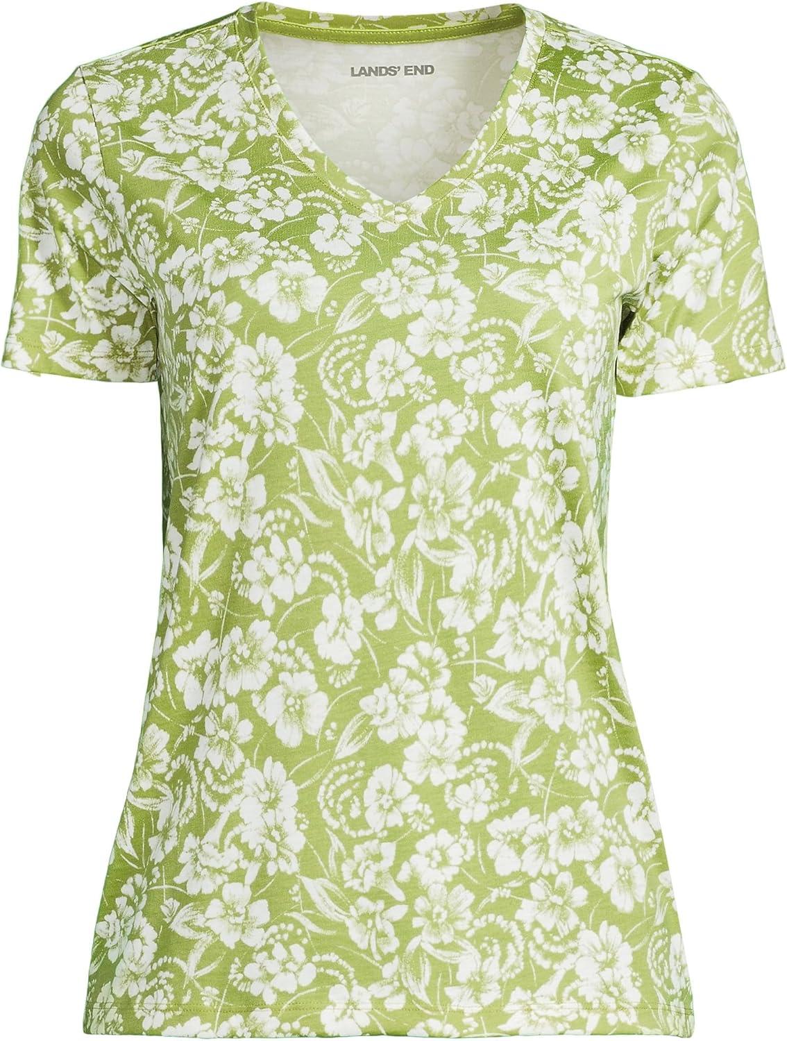 Lands’ End Women’s Relaxed American-Grown Supima Cotton V-Neck T-Shirt(Winter Pear Pretty Floral)