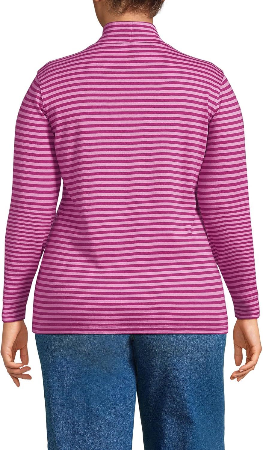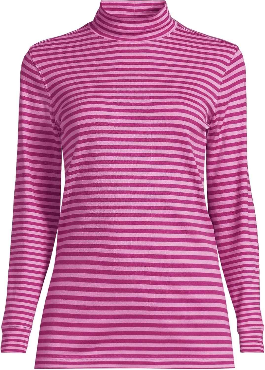 Lands’ End Women’s Relaxed Cotton Long Sleeve Mock Turtleneck Shirt(Aster Pink/Raspberry Stripe)