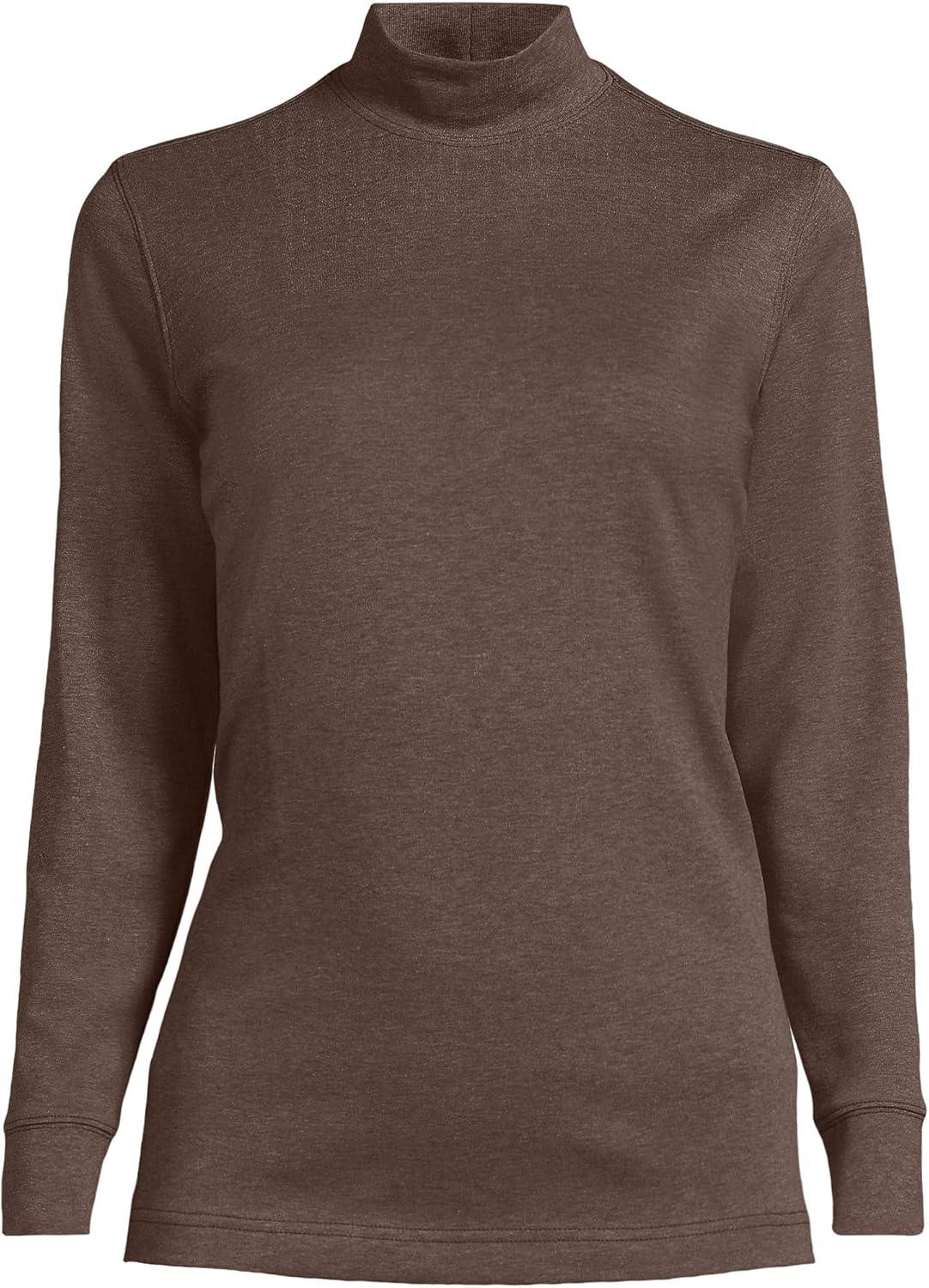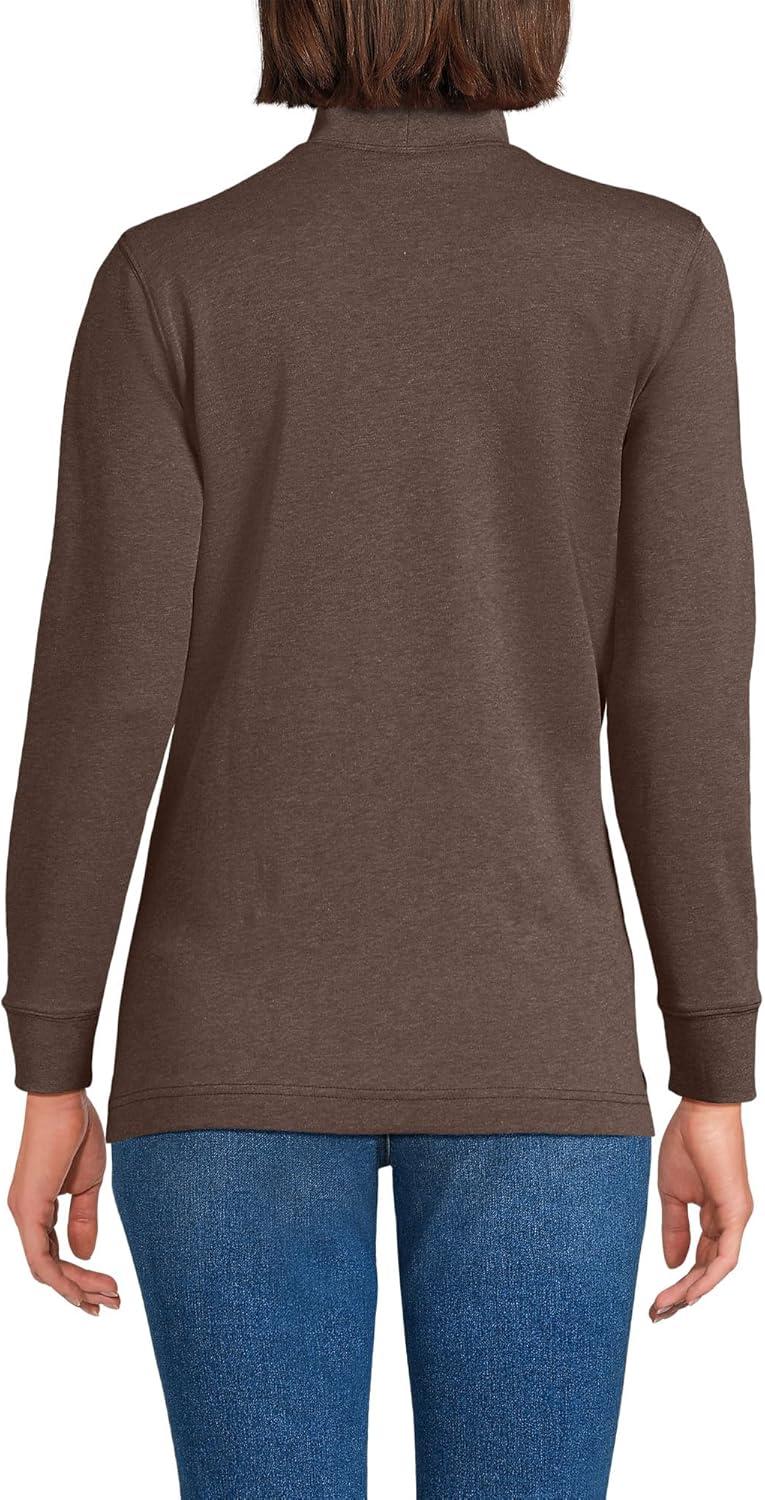 Lands’ End Women’s Relaxed Cotton Long Sleeve Mock Turtleneck Shirt(Bark Brown Heather)