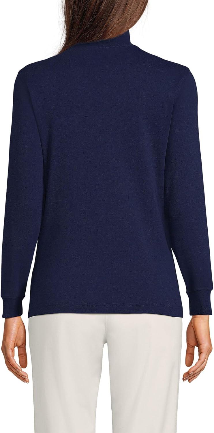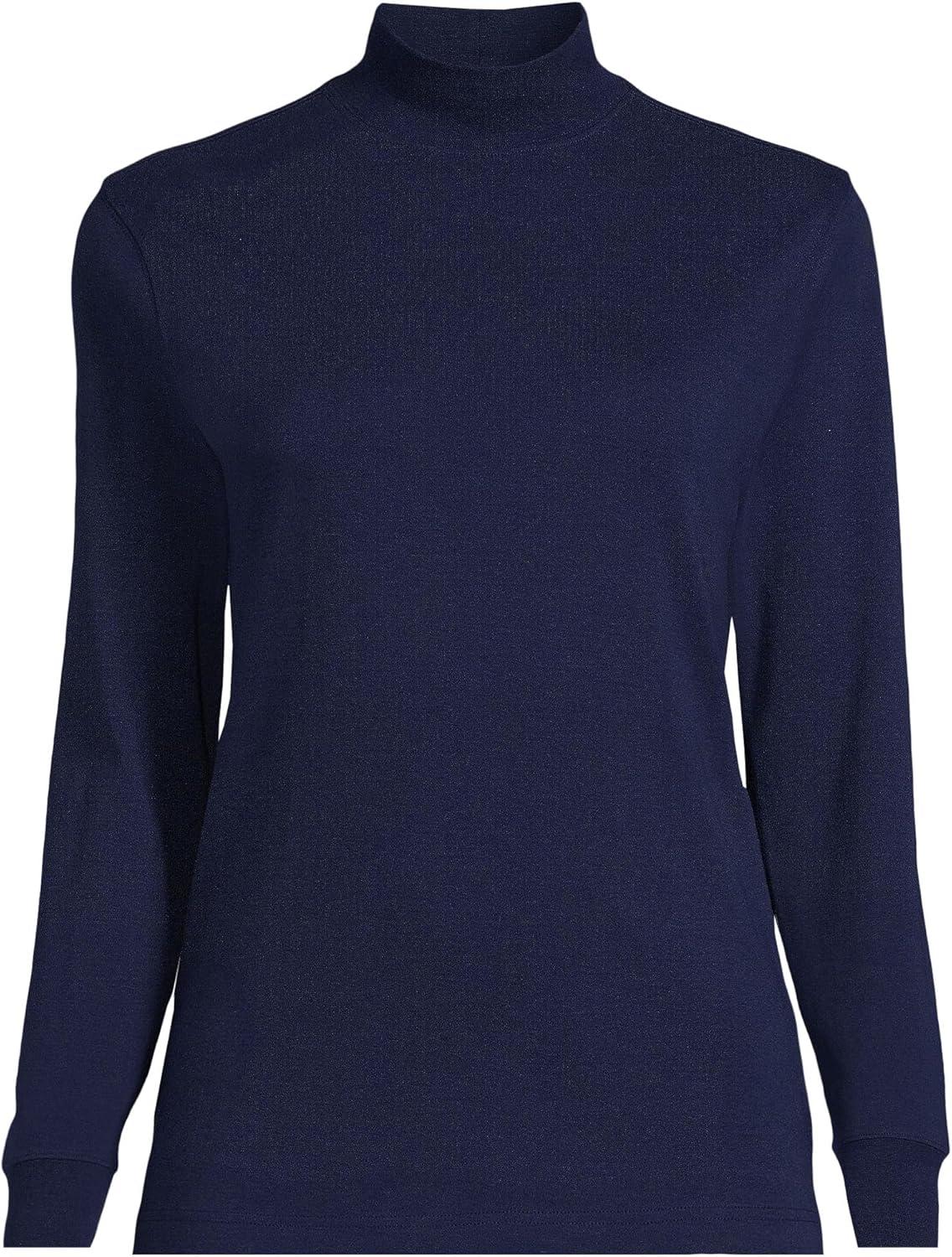 Lands’ End Women’s Relaxed Cotton Long Sleeve Mock Turtleneck Shirt(Deep Sea Navy)