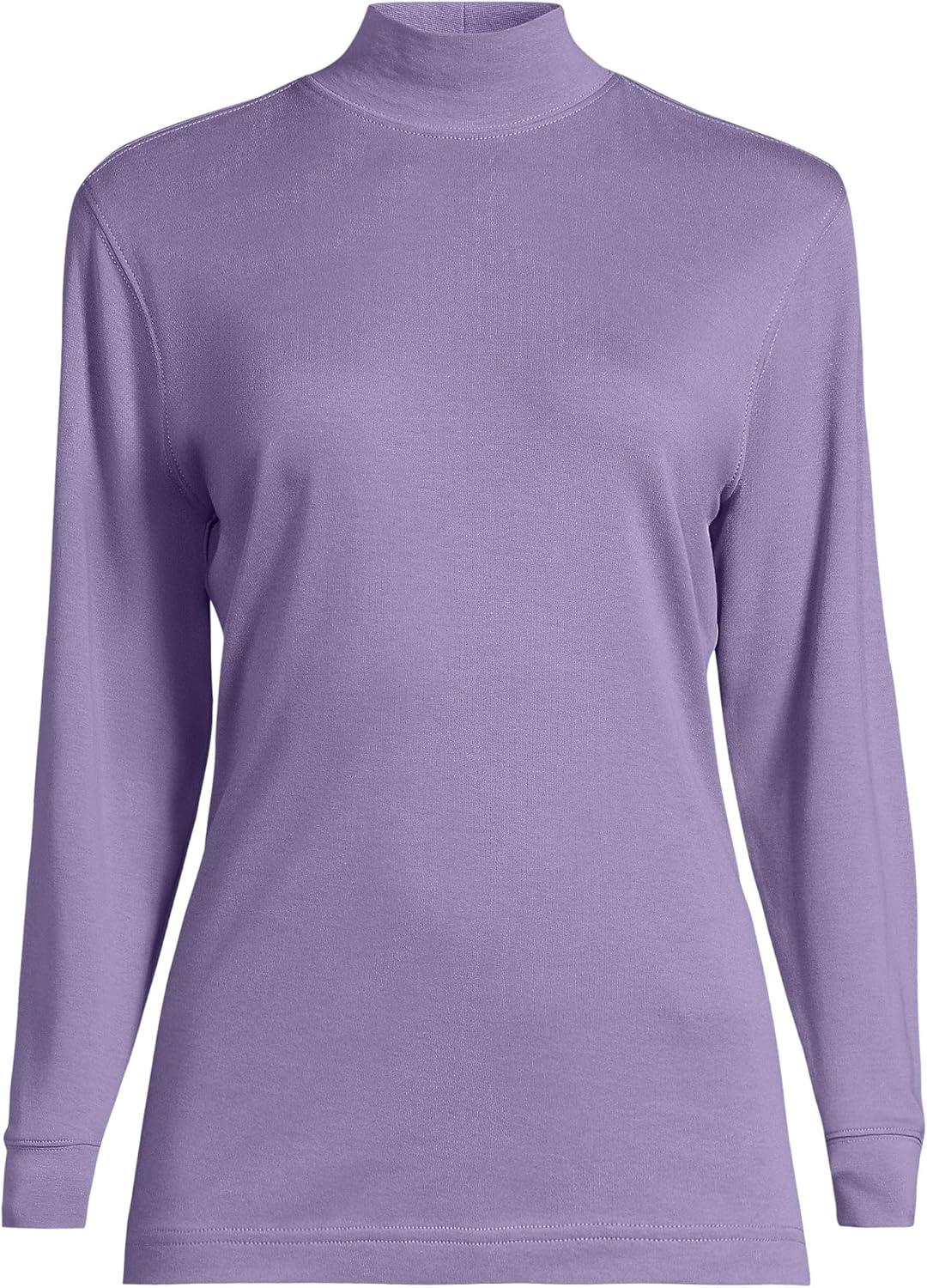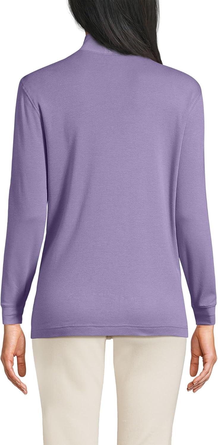 Lands’ End Women’s Relaxed Cotton Long Sleeve Mock Turtleneck Shirt(Violet Verbena)