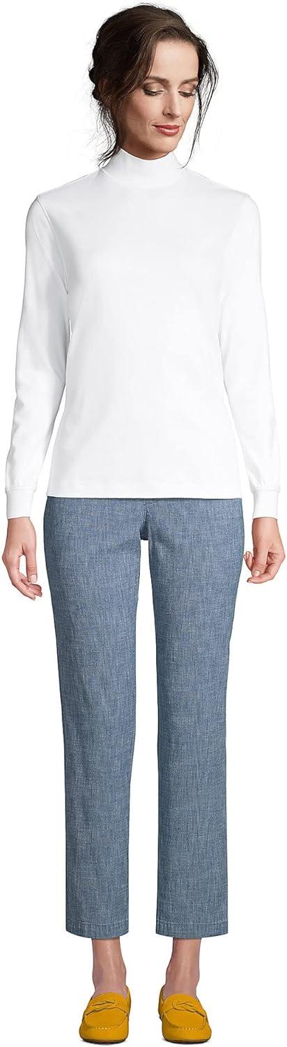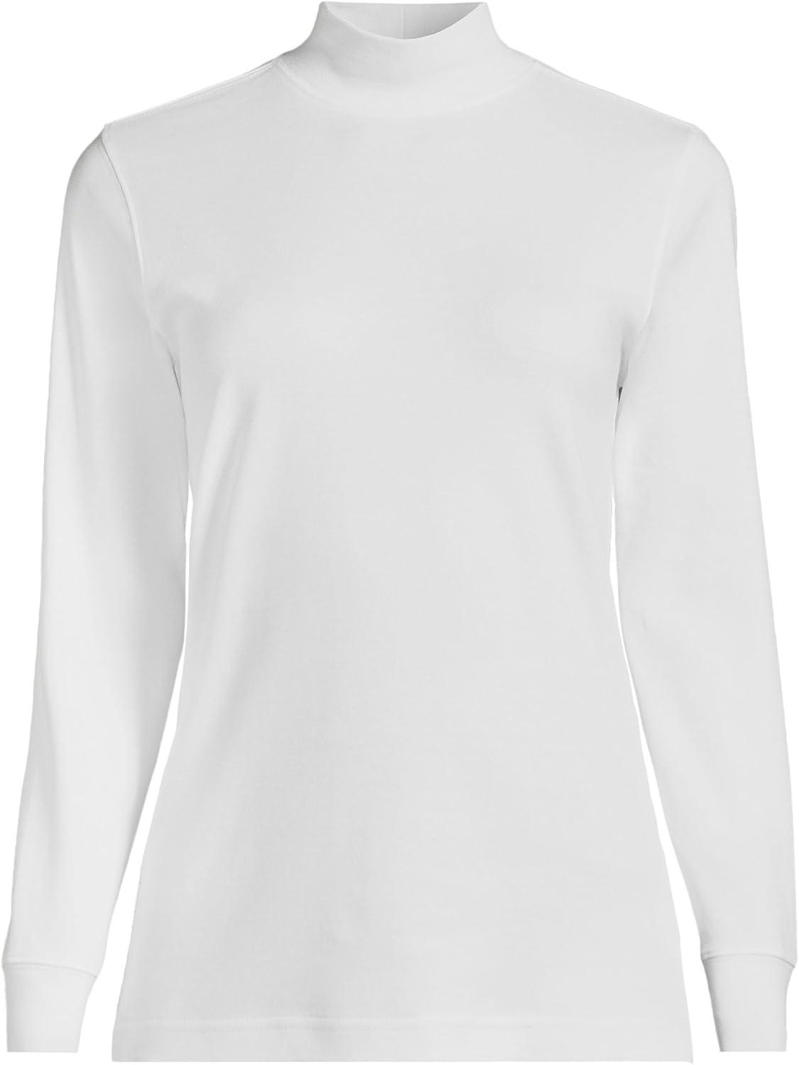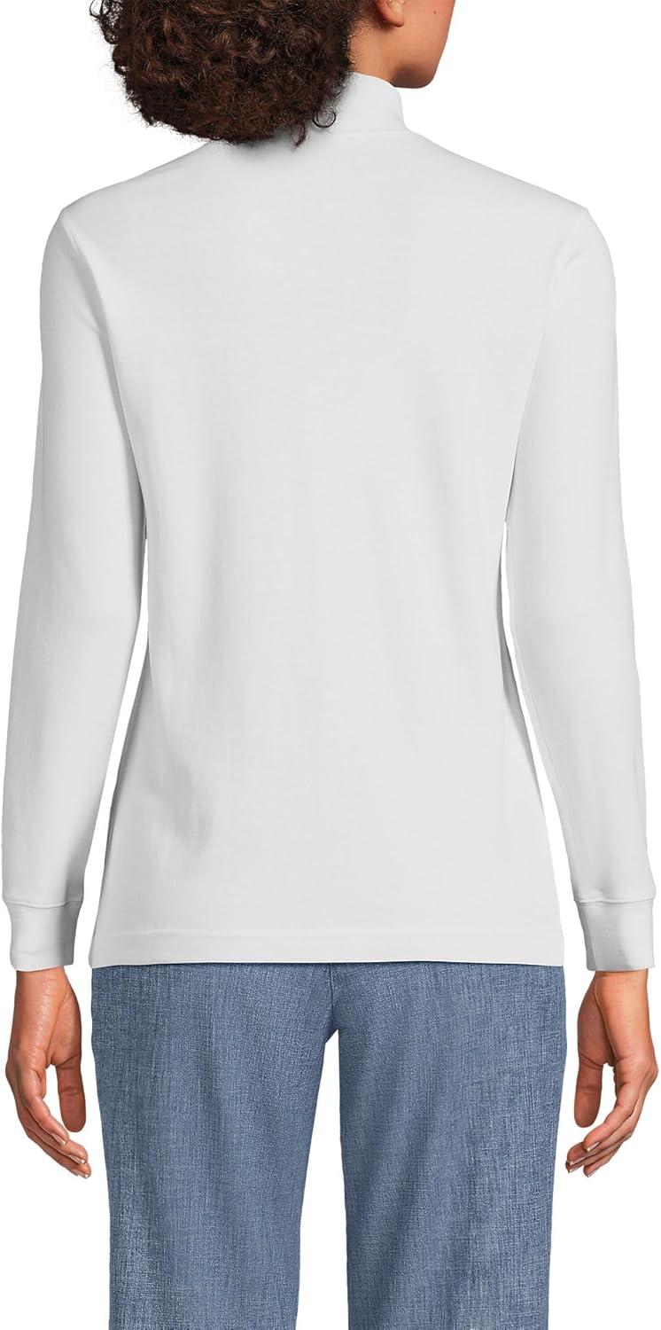 Lands’ End Women’s Relaxed Cotton Long Sleeve Mock Turtleneck Shirt(White)