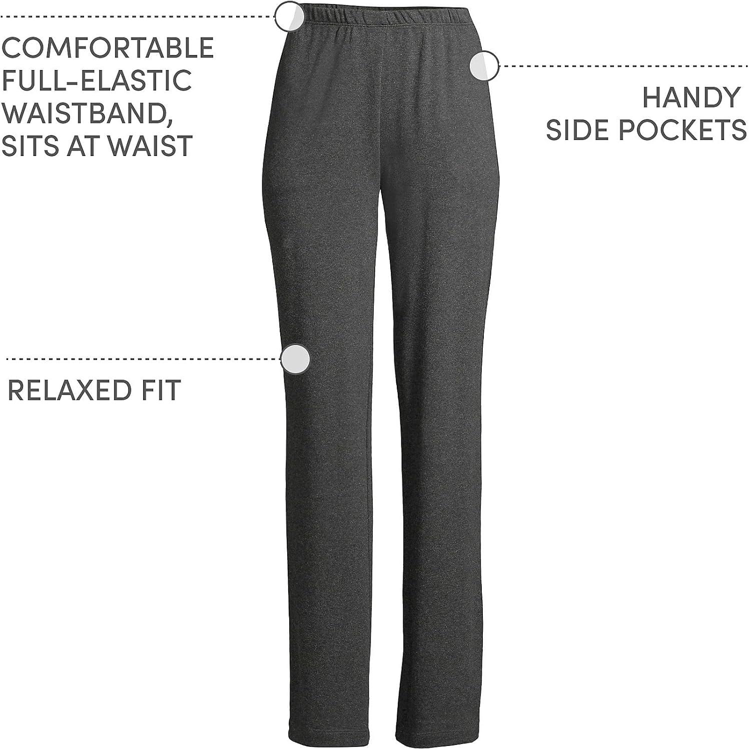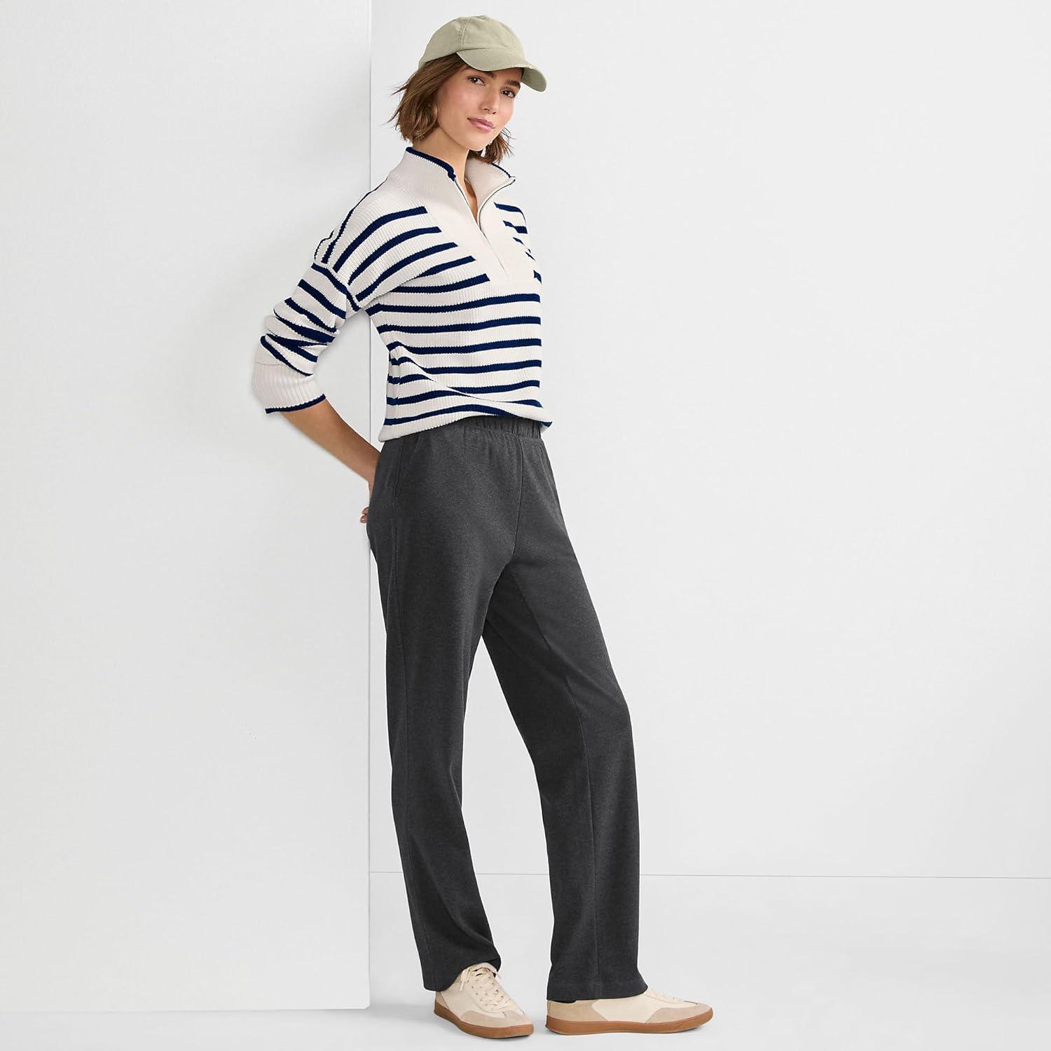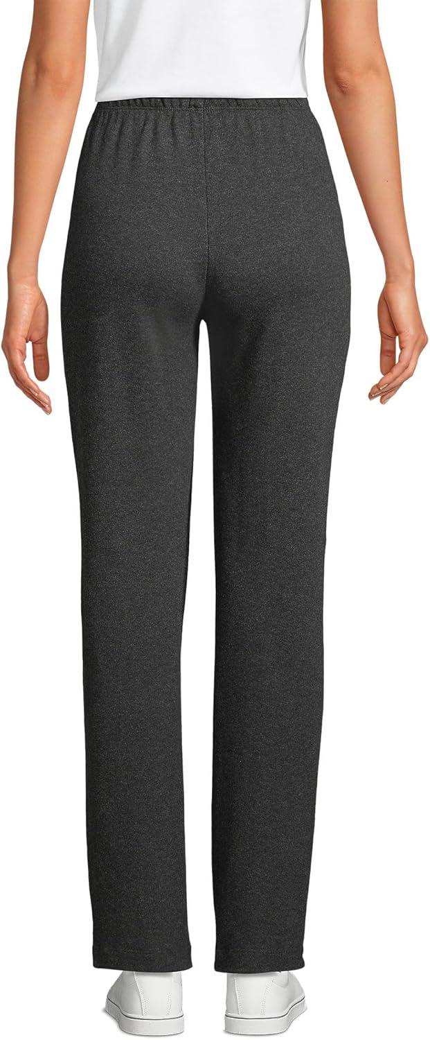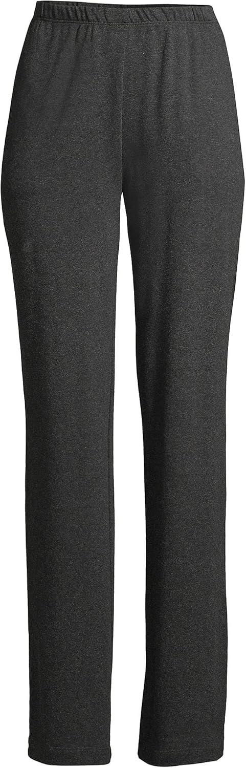 Lands’ End Women’s Relaxed Fit Sport Knit High Rise Pants – Soft Cotton Pull-On with Elastic Waist(Dark Charcoal Heather)