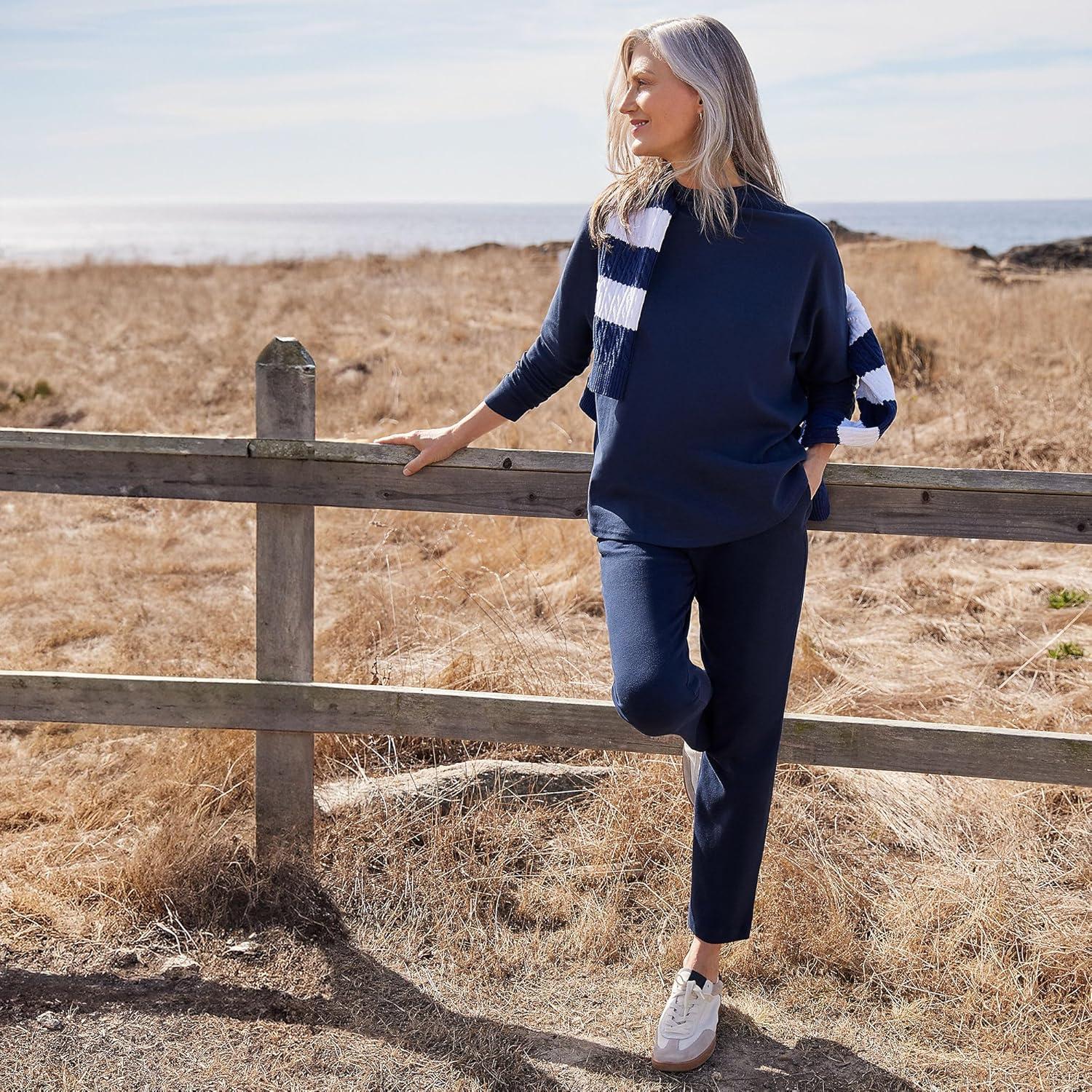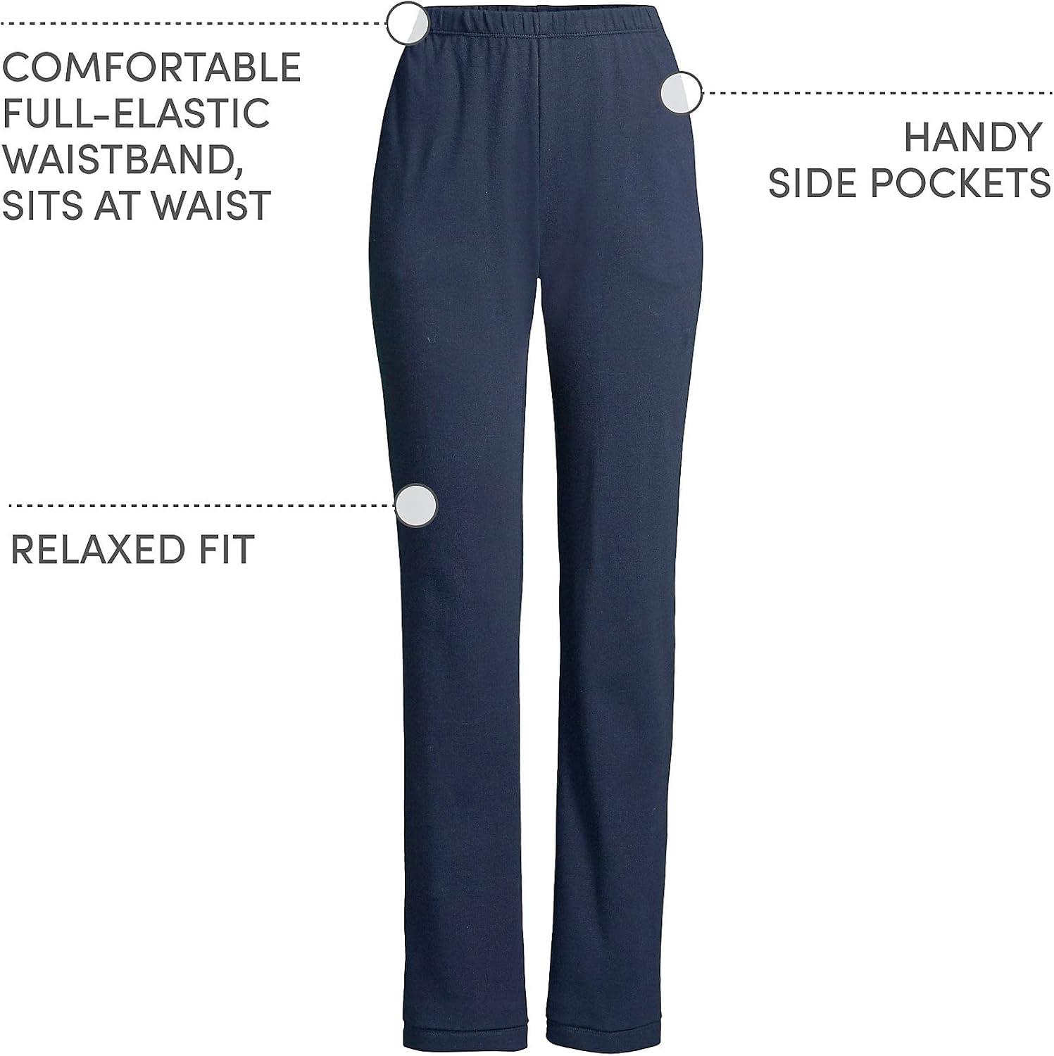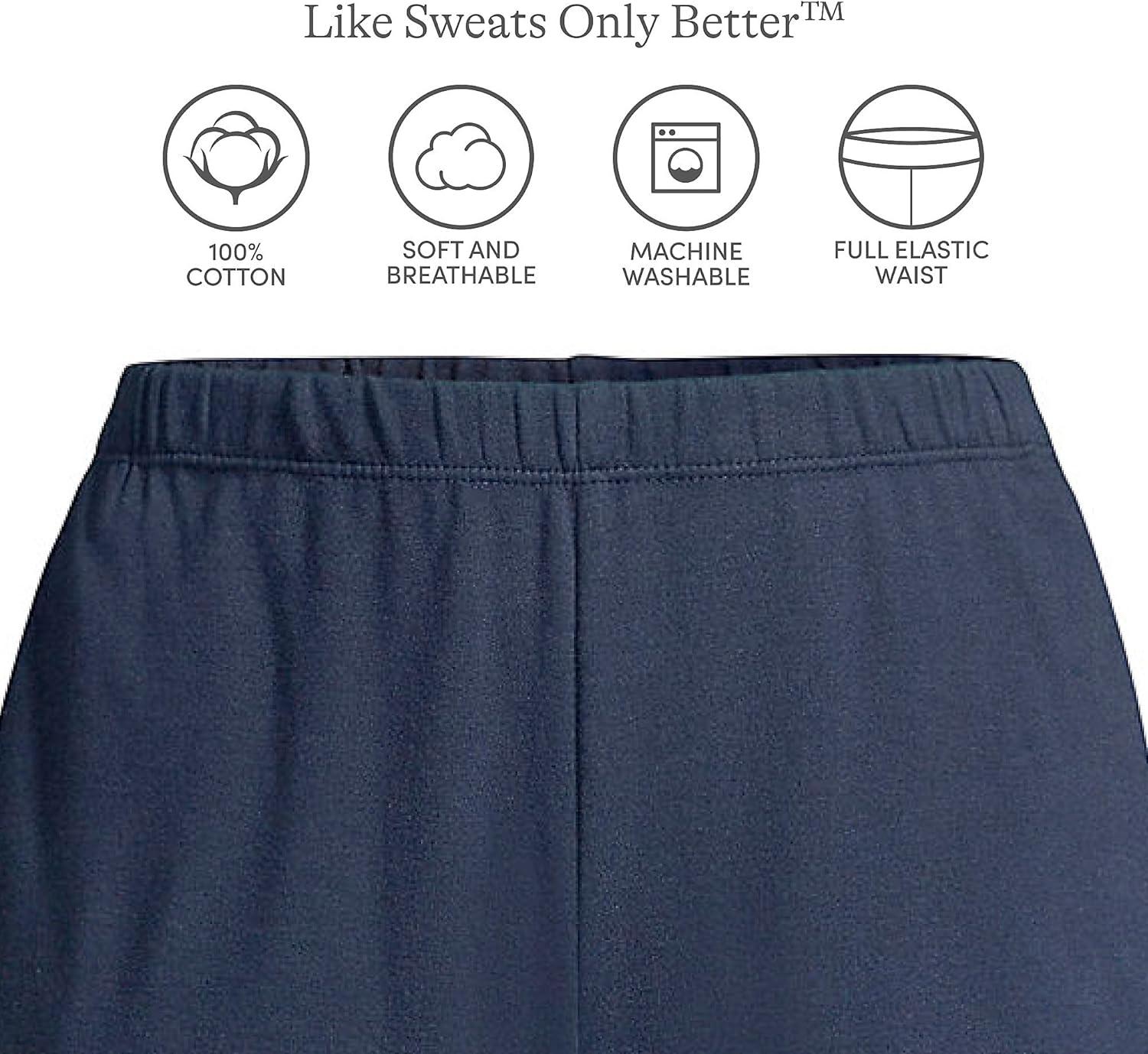 Lands’ End Women’s Relaxed Fit Sport Knit High Rise Pants – Soft Cotton Pull-On with Elastic Waist(Radiant Navy)