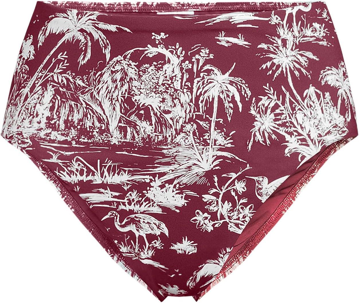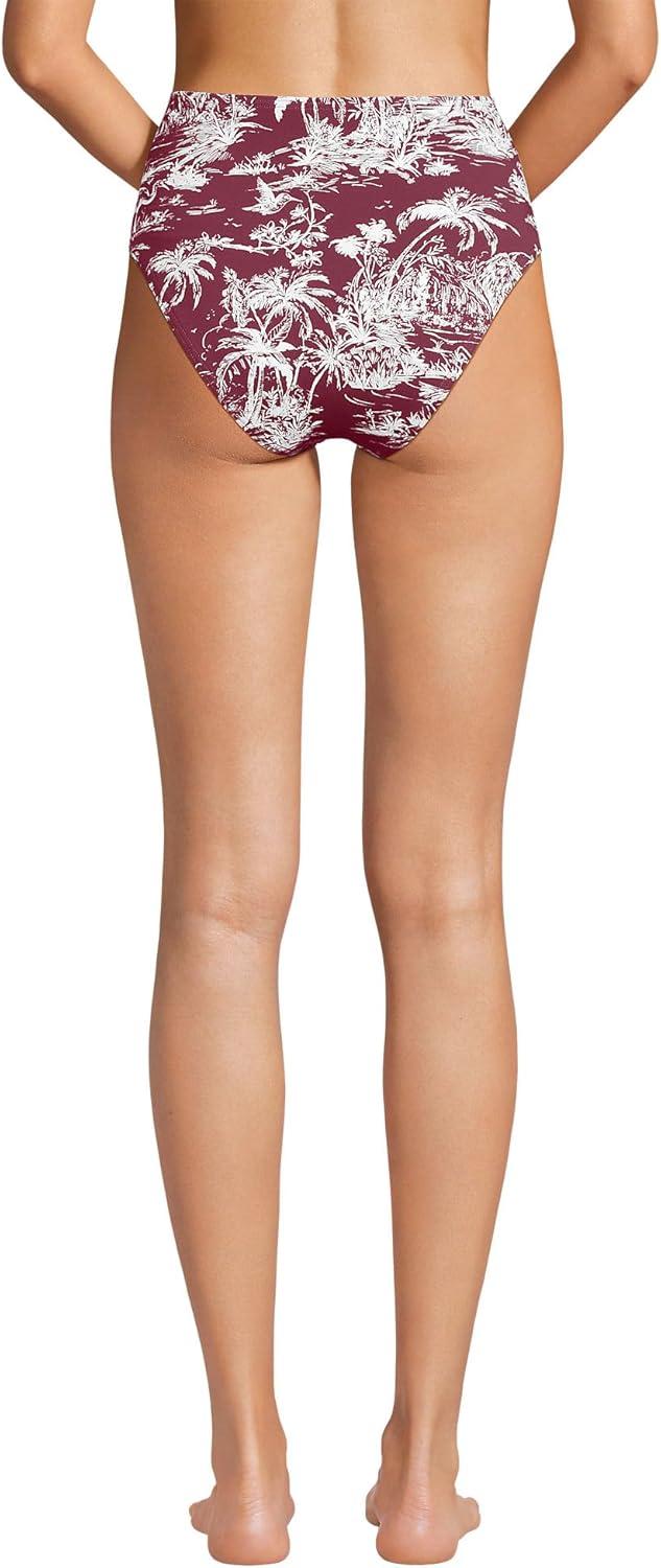 Lands’ End Women’s Ribbed Smoothing High Waisted Bikini Bottoms(Burgundy Island Scenic)