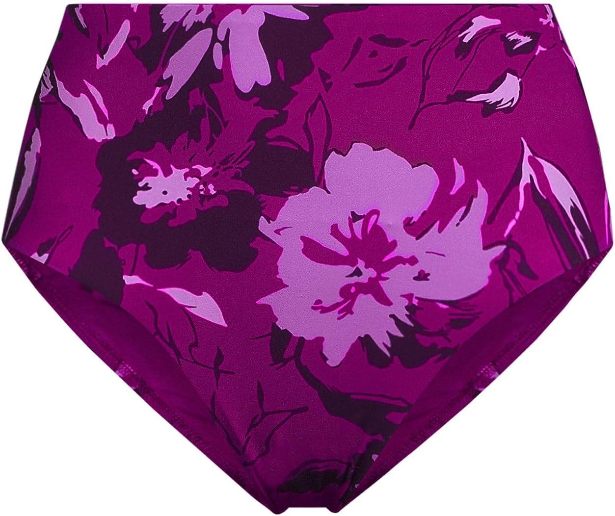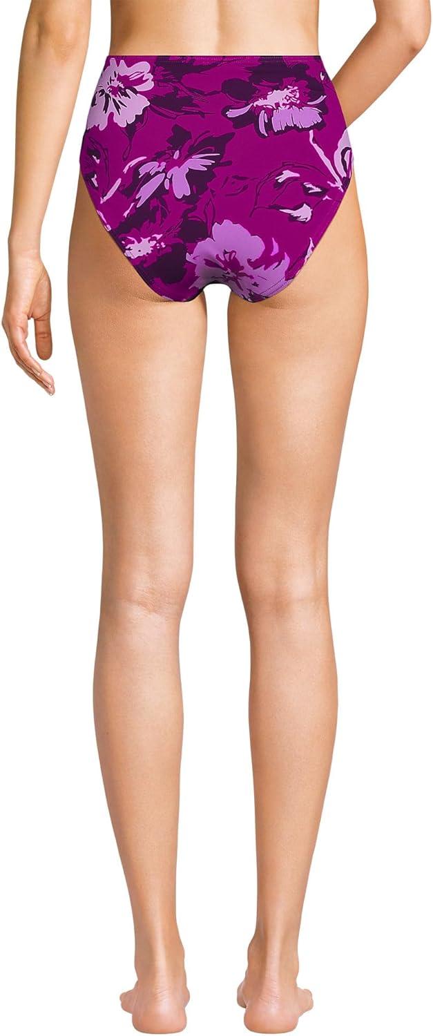 Lands’ End Women’s Ribbed Smoothing High Waisted Bikini Bottoms(Crimson Rose Abstract Floral)