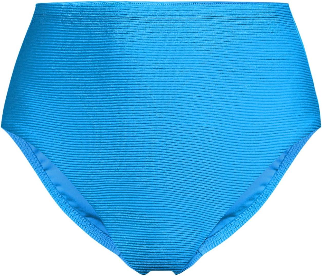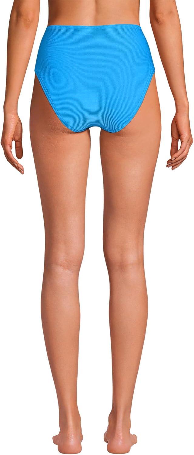 Lands’ End Women’s Ribbed Smoothing High Waisted Bikini Bottoms(Freshwater Blue Ottoman)