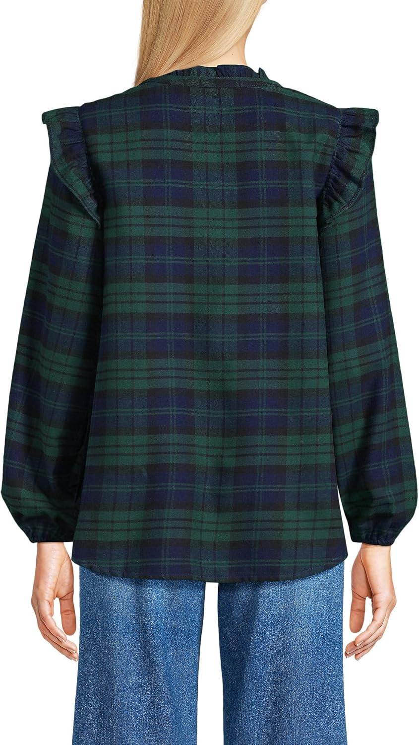 Lands’ End Women’s Ruffle Front Flannel Popover Blouse(Deep Forest Blackwatch Plaid)