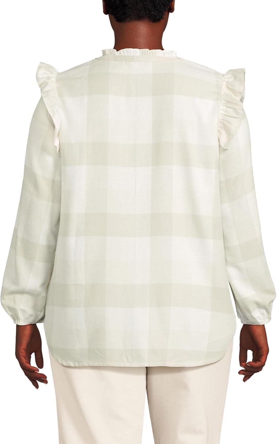 Lands’ End Women’s Ruffle Front Flannel Popover Blouse(Ivory/Portobello Check)