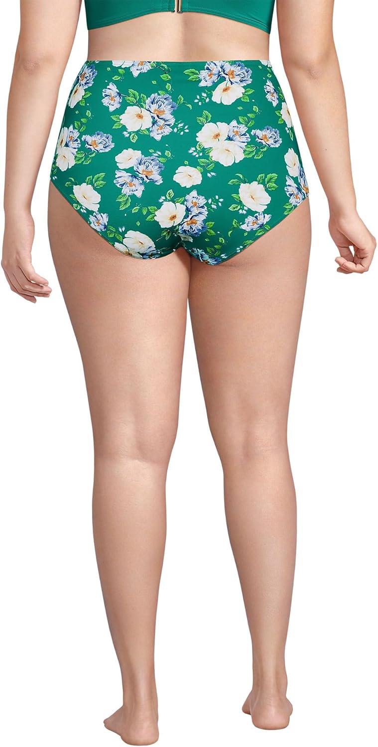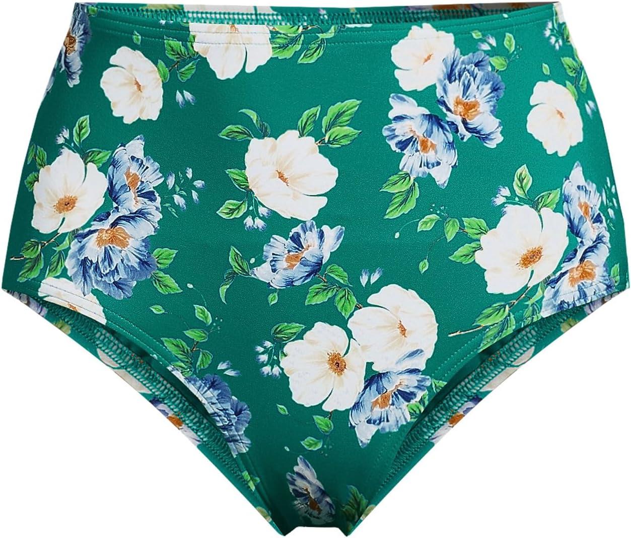Lands’ End Women’s Sculpting Suit Chlorine Resistant Targeted Control Retro High Waisted Bikini Swim Bottoms(Island Emerald Petunia Floral)