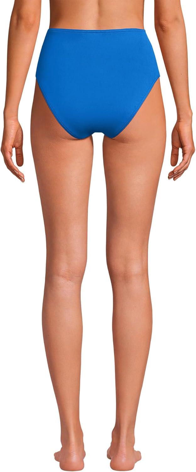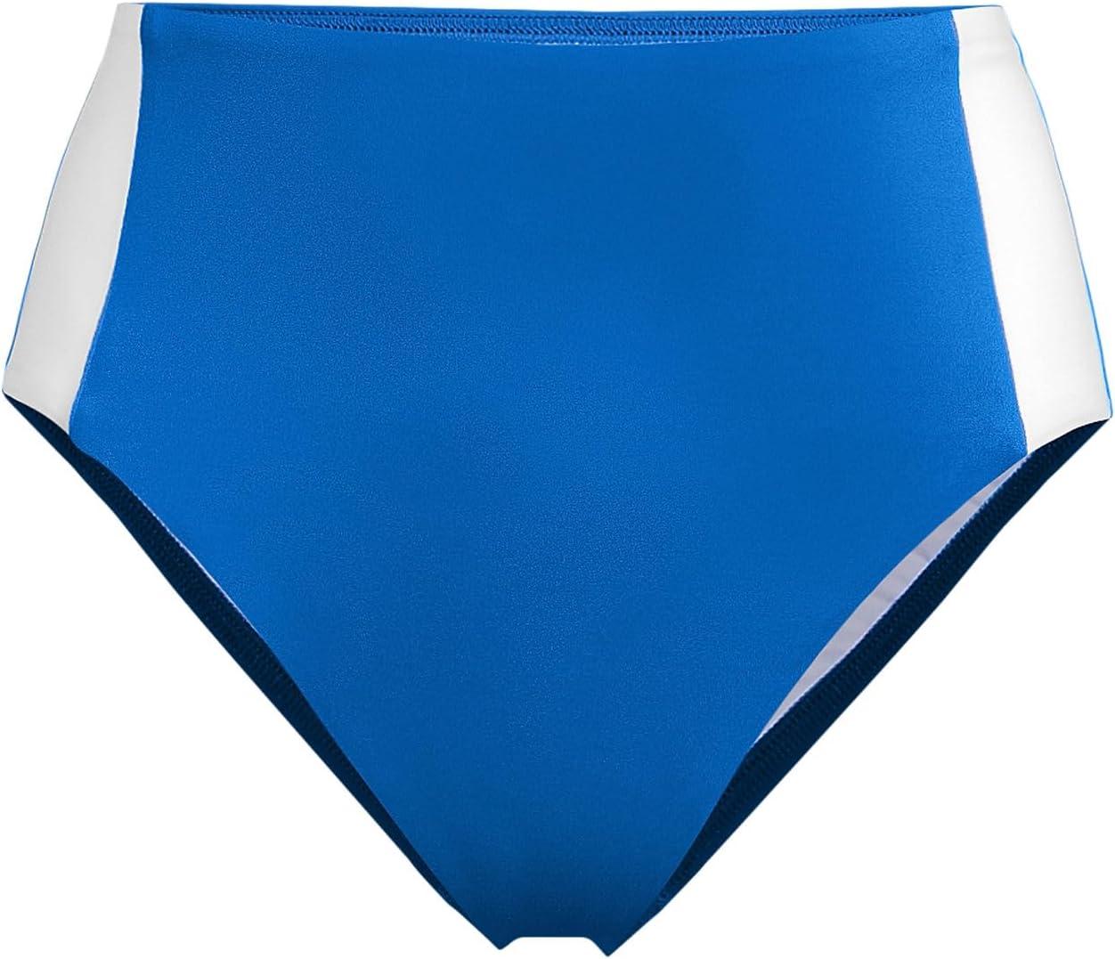 Lands’ End Women’s Seamed High Waisted Bikini Bottoms(Bright Cobalt Blue/White)