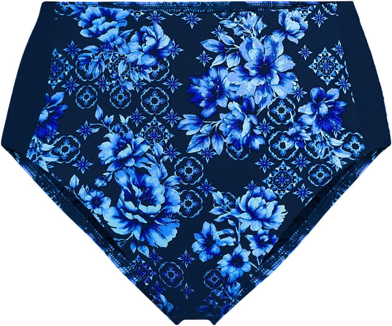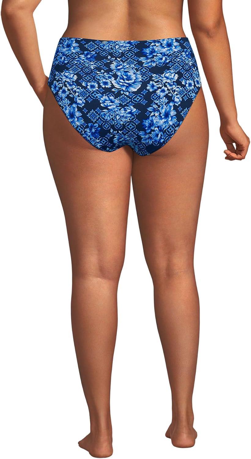 Lands’ End Women’s Seamed High Waisted Bikini Bottoms(Deep Sea Navy Mosaic Floral)