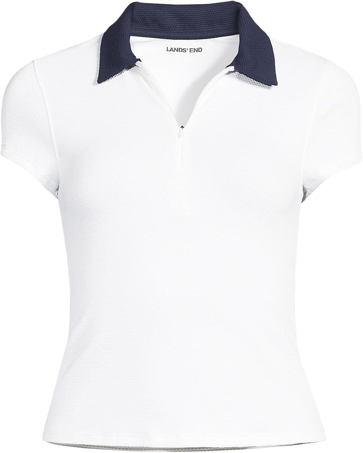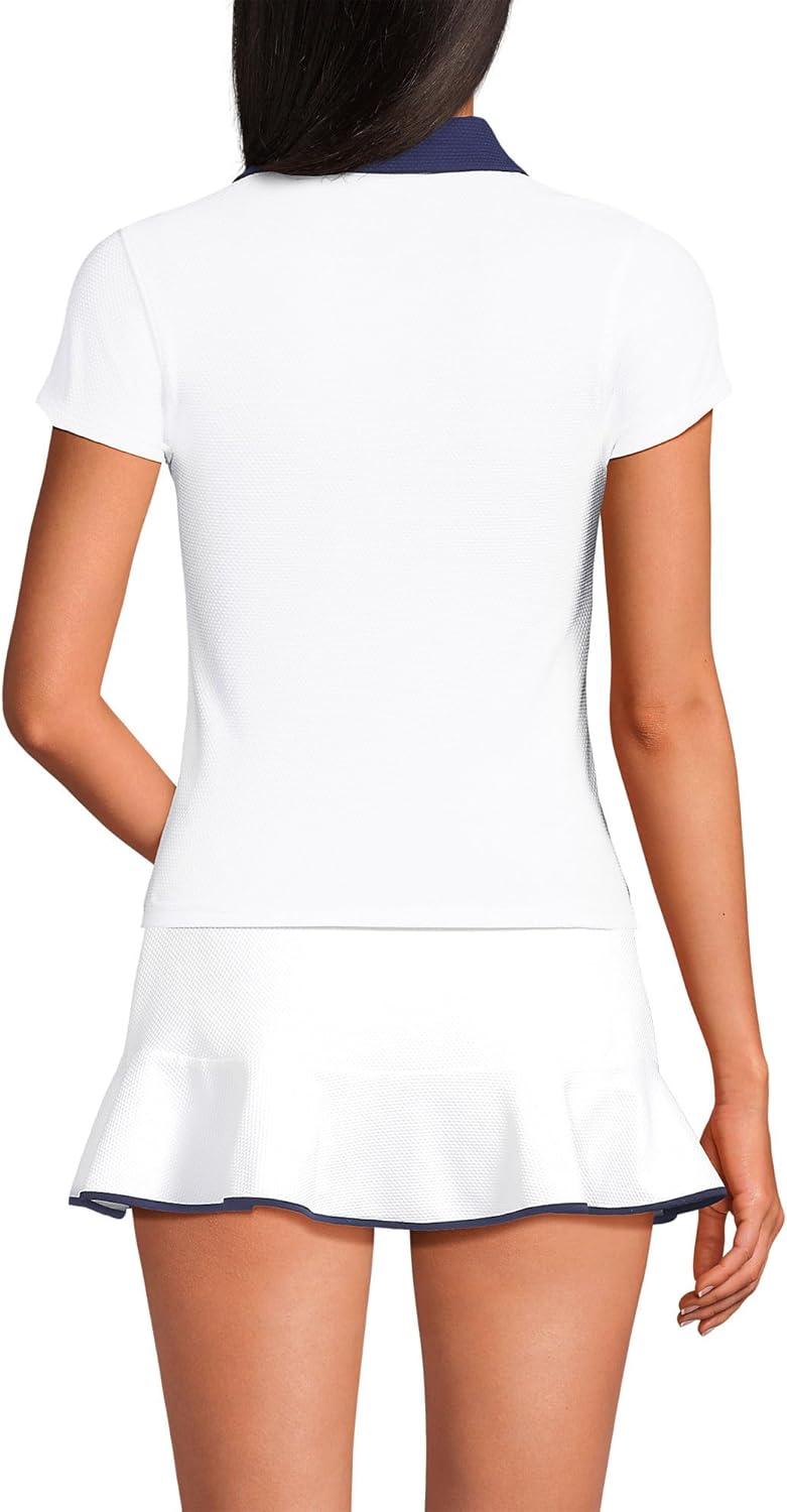 Lands’ End Women’s Short Sleeve Pique Johnny Collar UPF 50 Rash Guard(White/Deep Sea Navy)