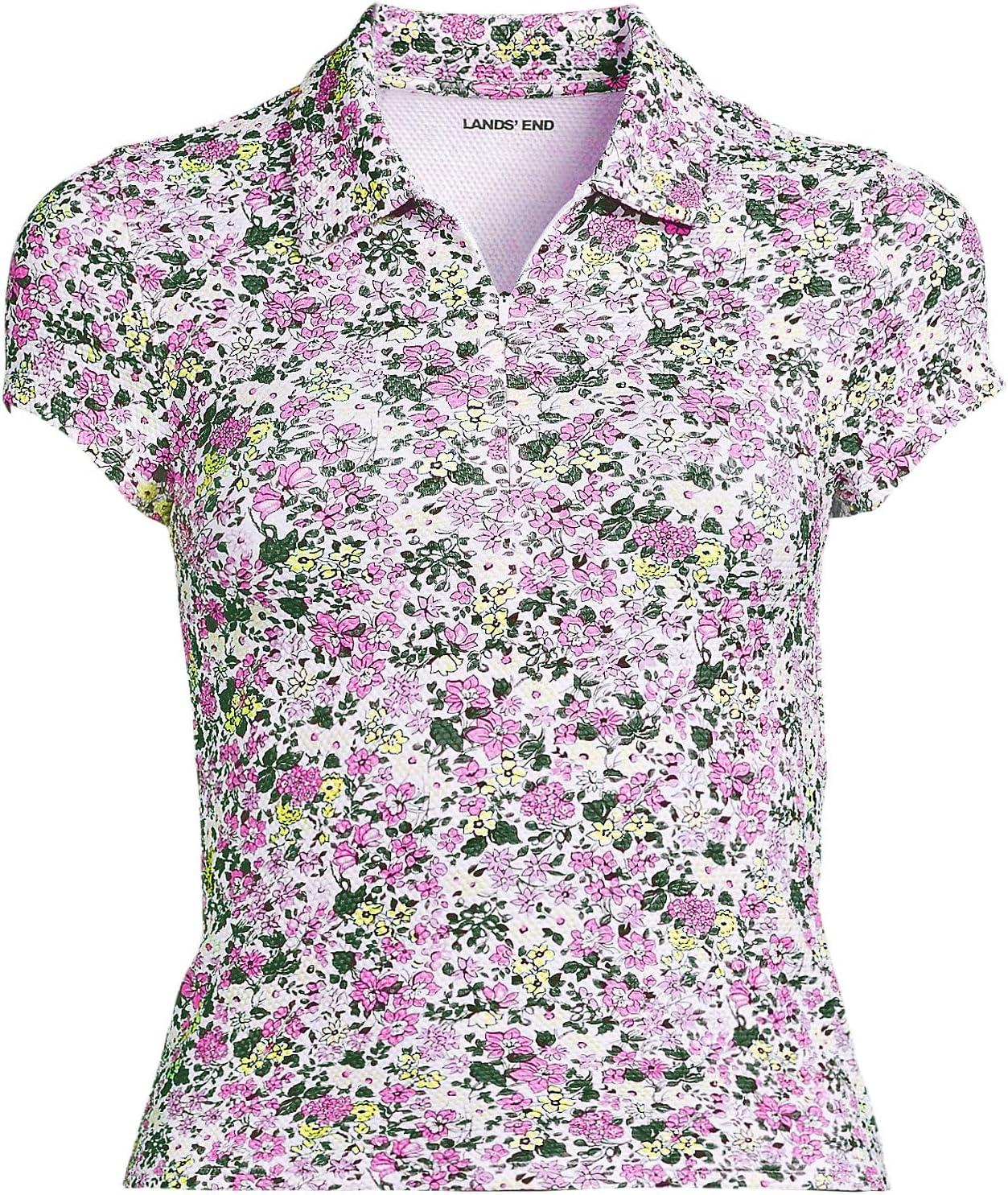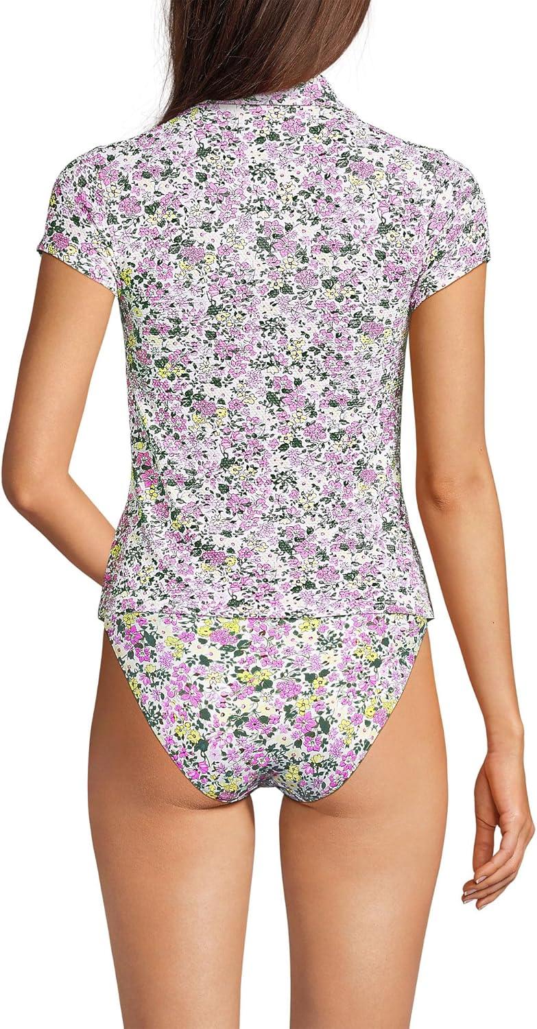 Lands’ End Women’s Short Sleeve Pique Johnny Collar UPF 50 Rash Guard(White Multi Ditsy Floral)