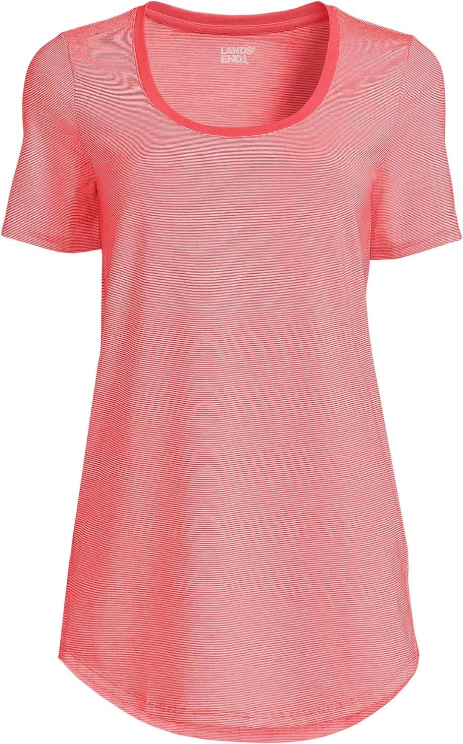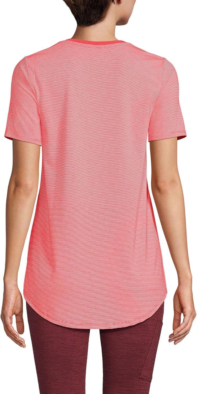 Lands’ End Women’s Short Sleeve Power Performance Scoop Neck Curved Hem Tunic Tee(Deep Coral Pinstripe)