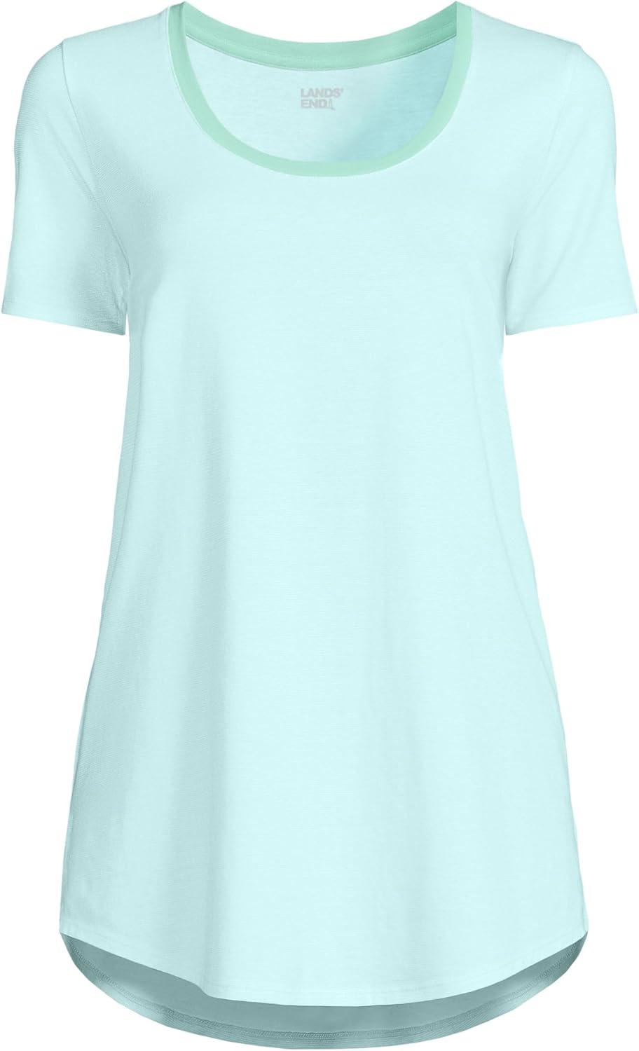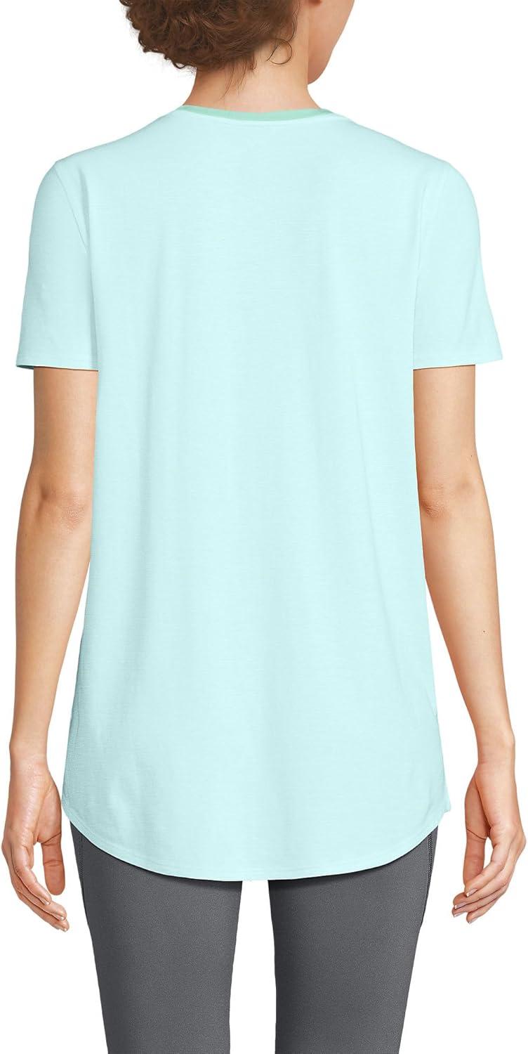 Lands’ End Women’s Short Sleeve Power Performance Scoop Neck Curved Hem Tunic Tee(Julep Pinstripe)