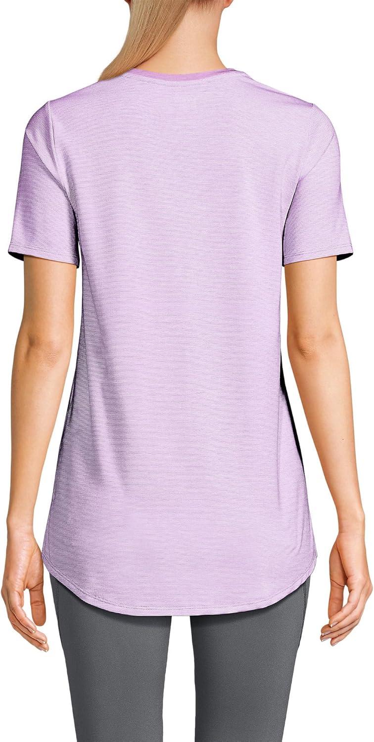 Lands’ End Women’s Short Sleeve Power Performance Scoop Neck Curved Hem Tunic Tee(Wild Lilac Pinstripe)