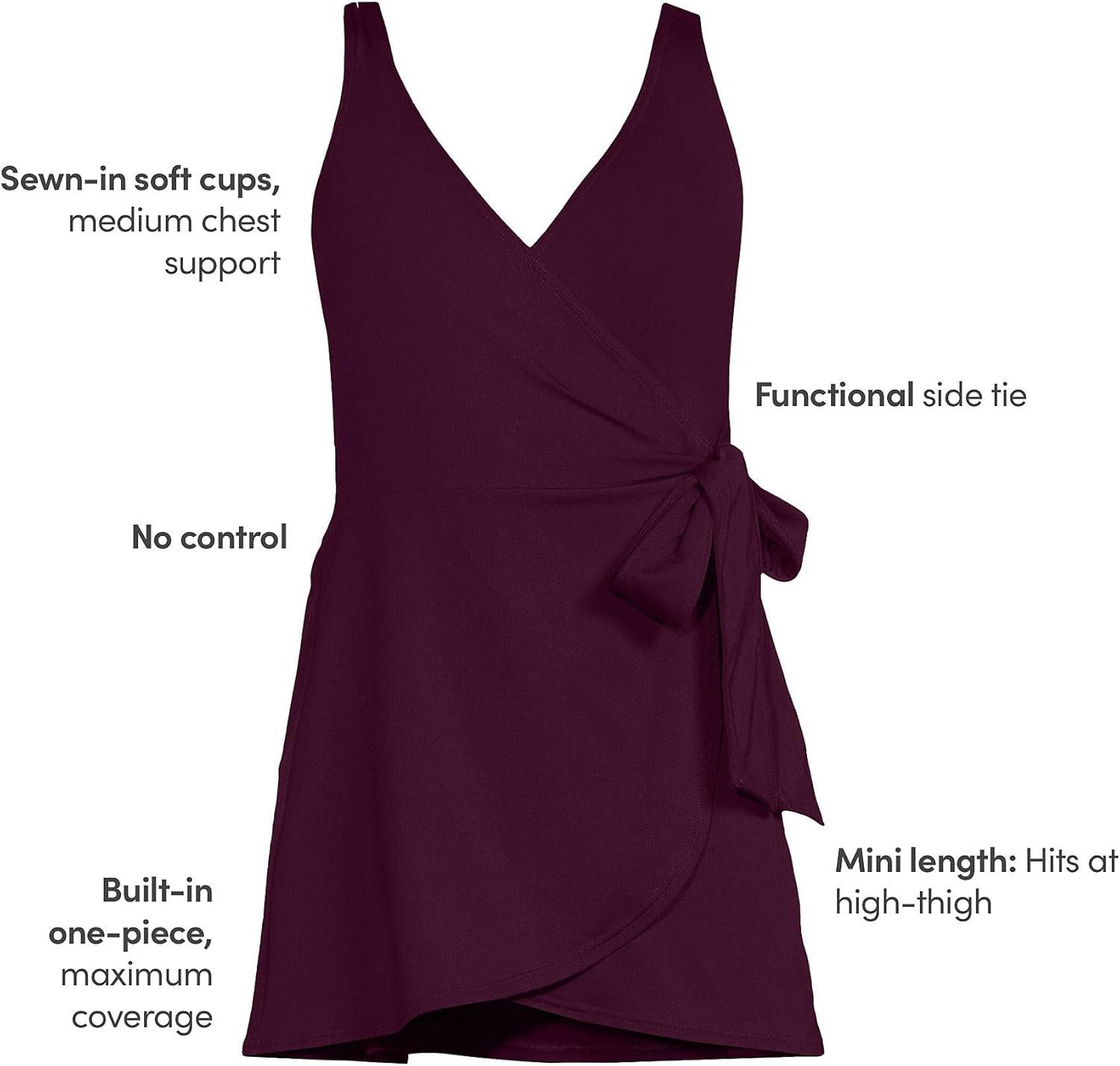 Lands’ End Women’s Side Tie Mini Swim Dress Swimsuit(Dark Wine)