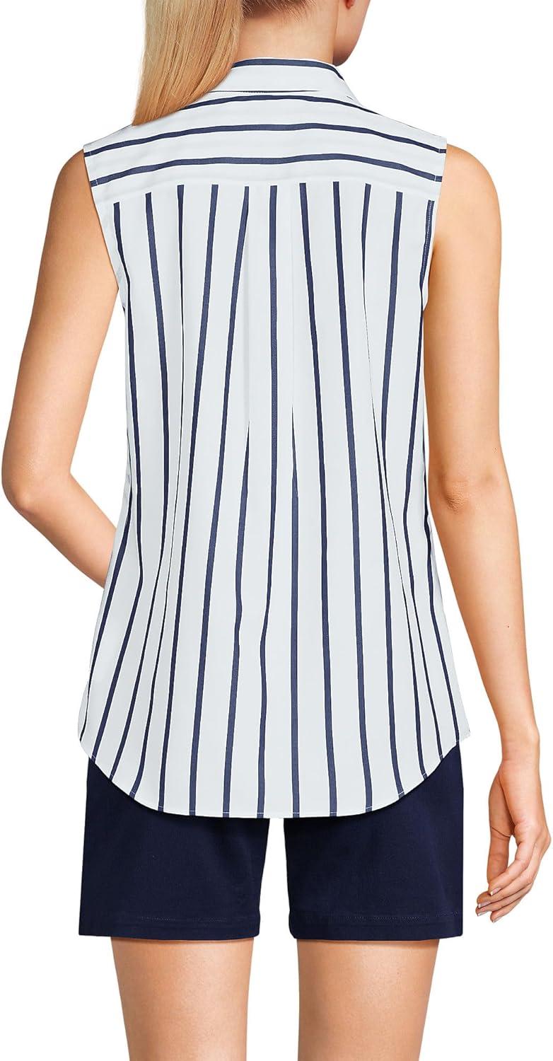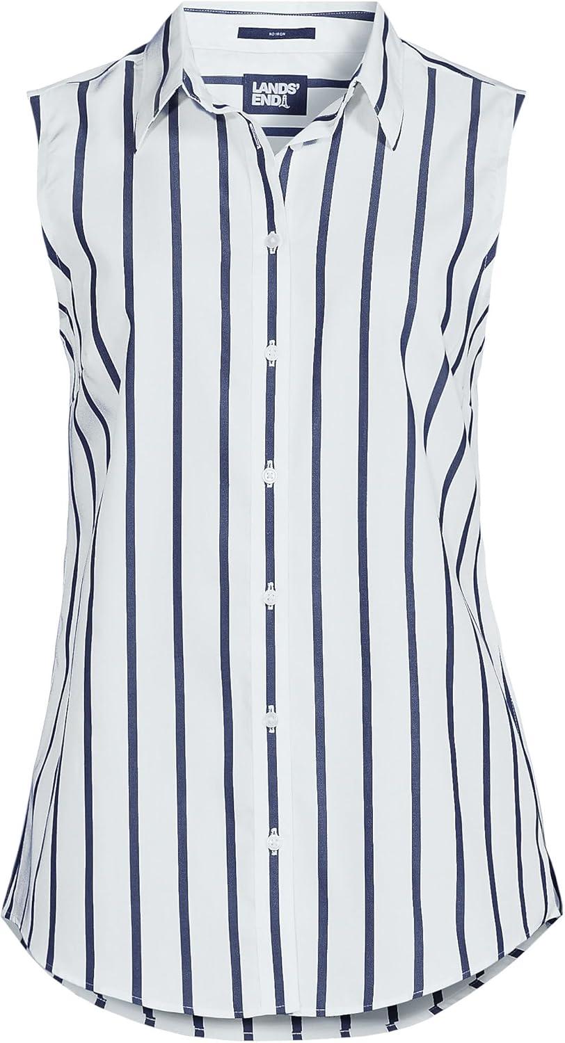 Lands’ End Women’s Sleeveless No Iron Shirt(White/Navy Classic Stripe)